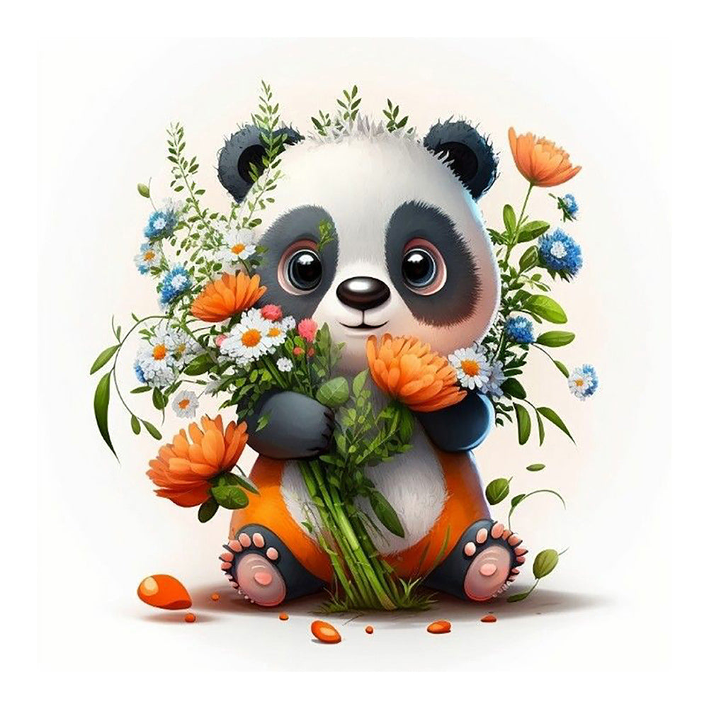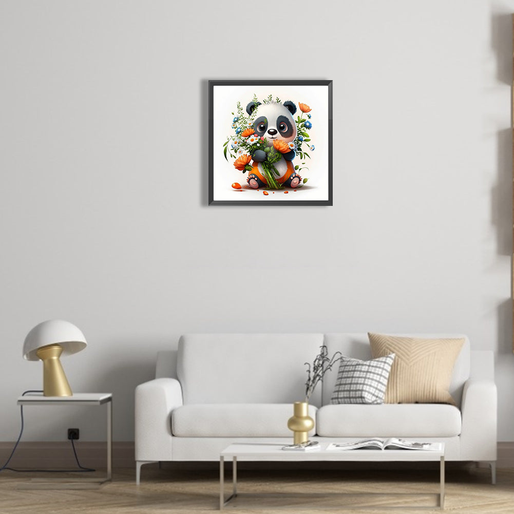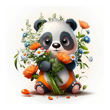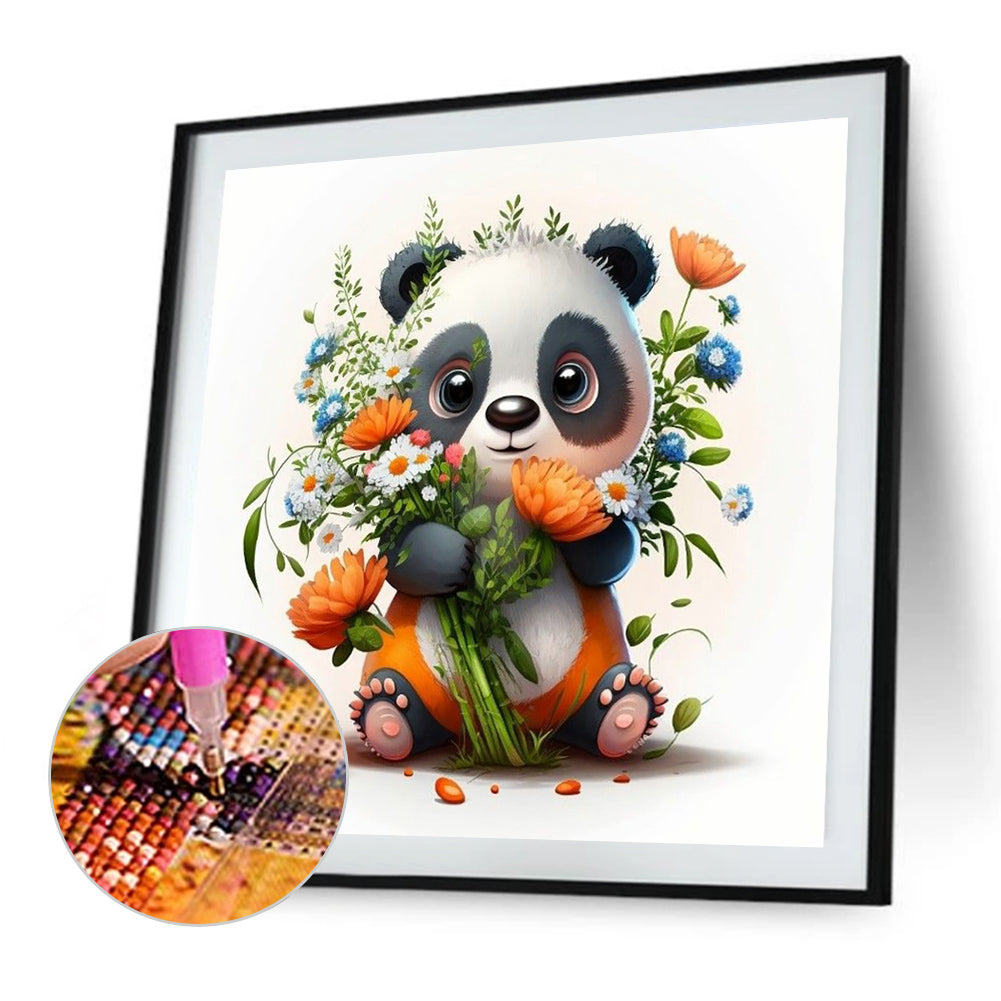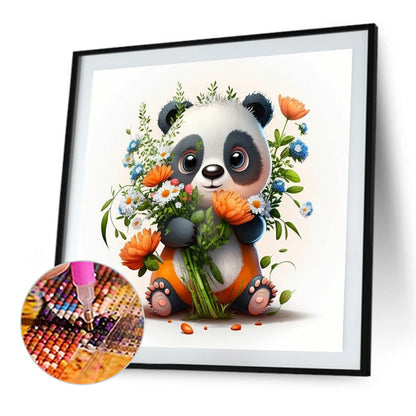 Panda Preparing For Flower Arrangement - Full Round Drill Diamond Painting 30*30CM