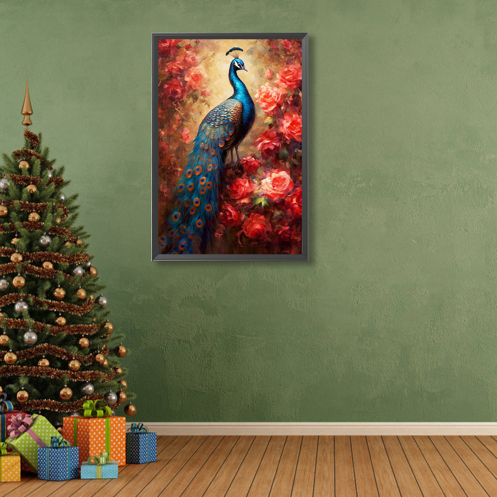 Peacock And Red Flower - Full Round Drill Diamond Painting 40*60CM