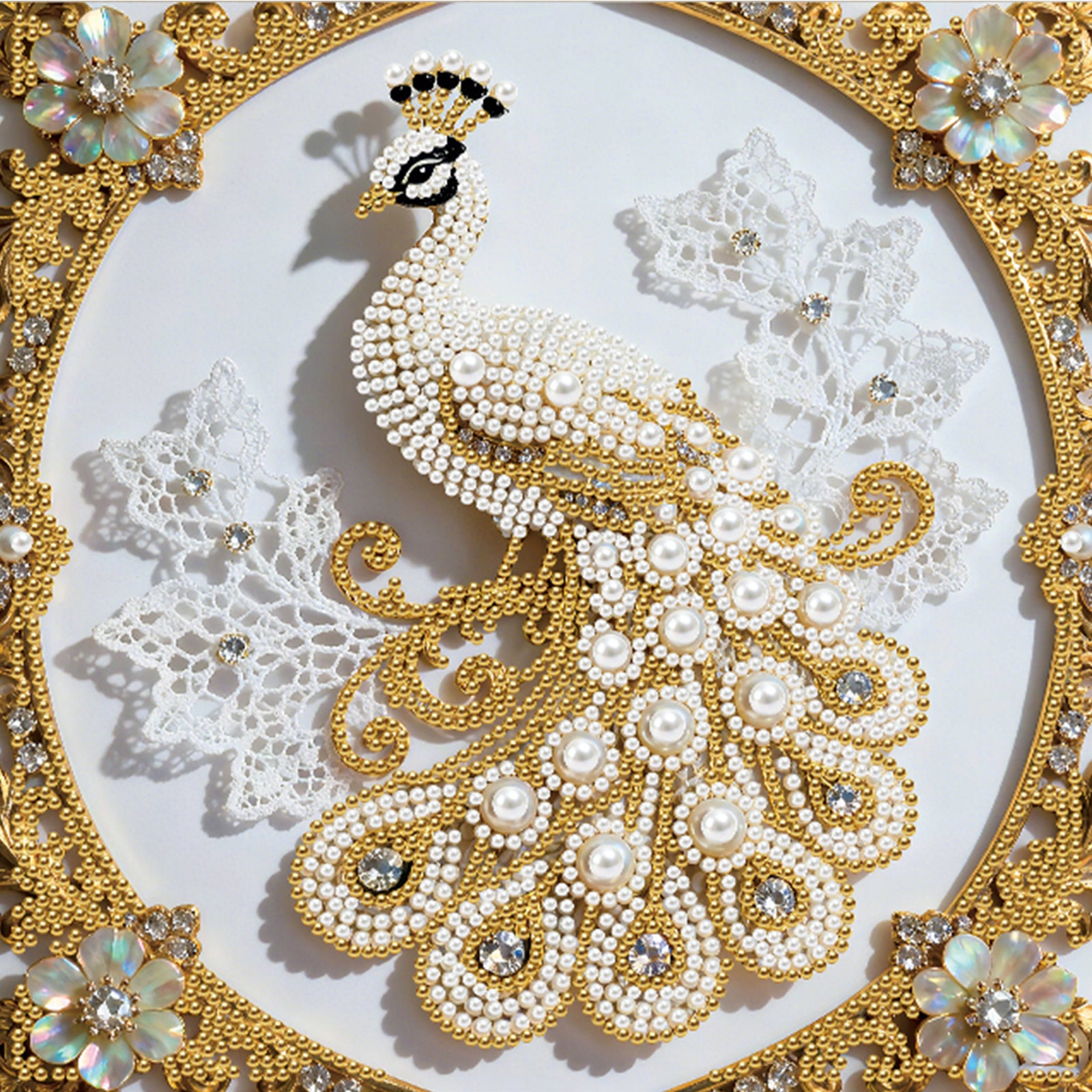 Peacock - DIY Pearl Gem Art Diamond Painting Kits With Framefor Home Decor -25x25cm