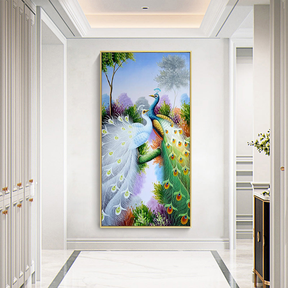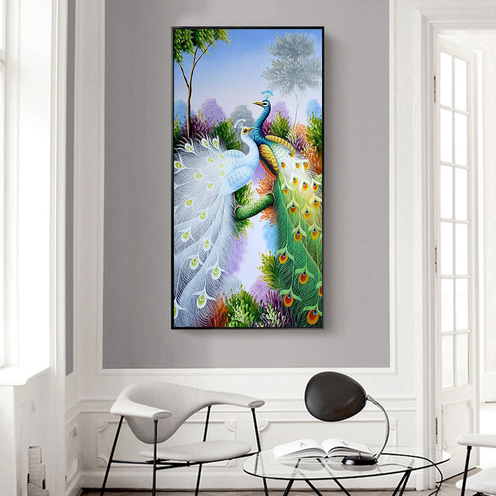 Peacocks - Full Round Drill Diamond Painting 30*60CM