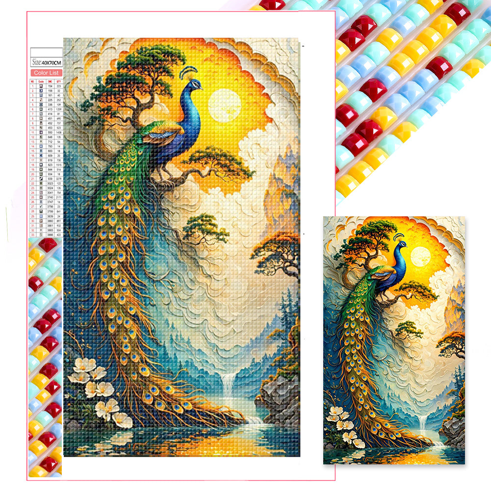 Peacocks In Green Pine Shadows - Full Square Drill Diamond Painting 40*70CM