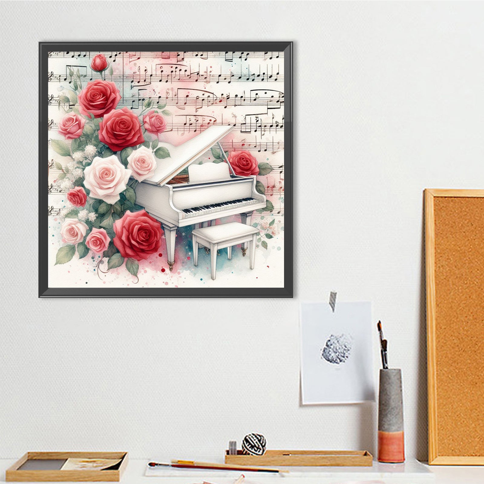 Piano And Red Roses - Full Round Drill Diamond Painting 40*40CM