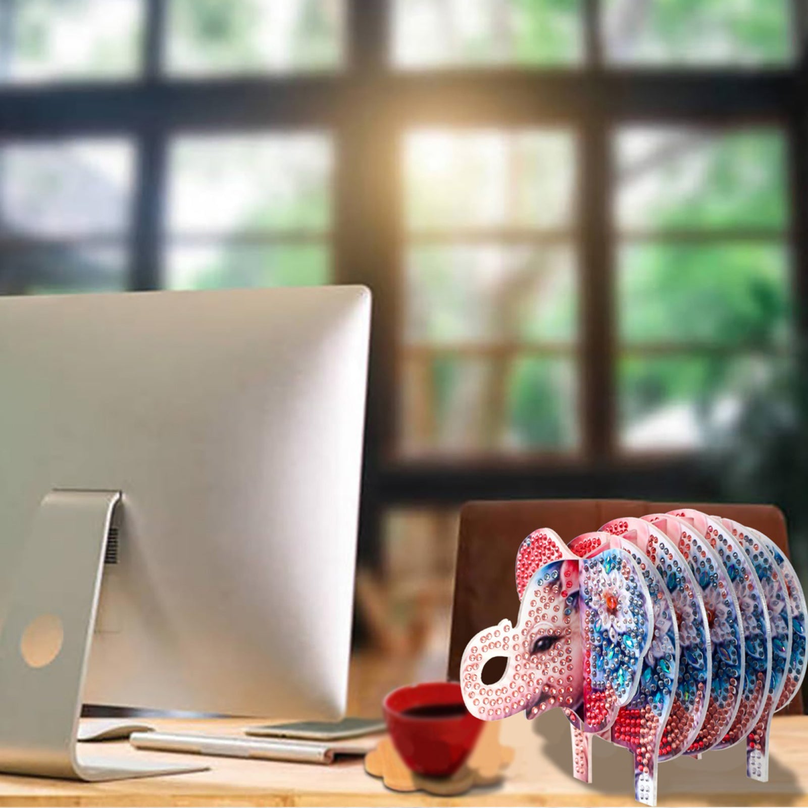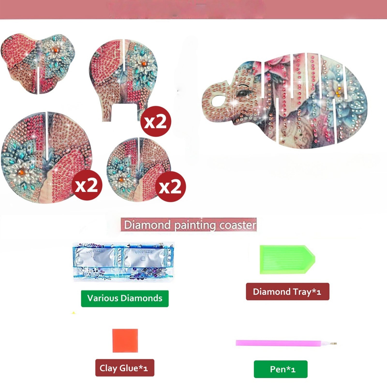 Pink Elephant 5D DIY Animal Pattern Diamond Painting Coasters Kits with Holder
