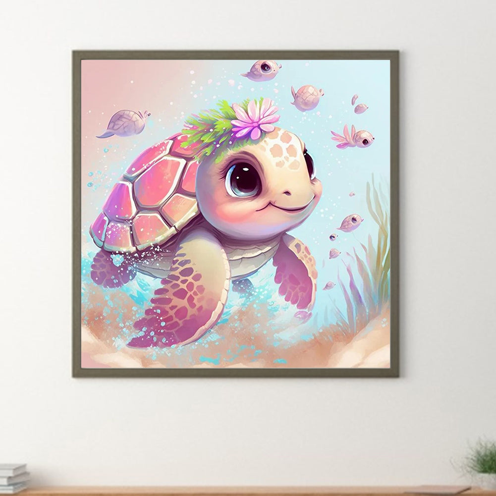 Pink Sea Turtle - Full Round Drill Diamond Painting 30*30CM