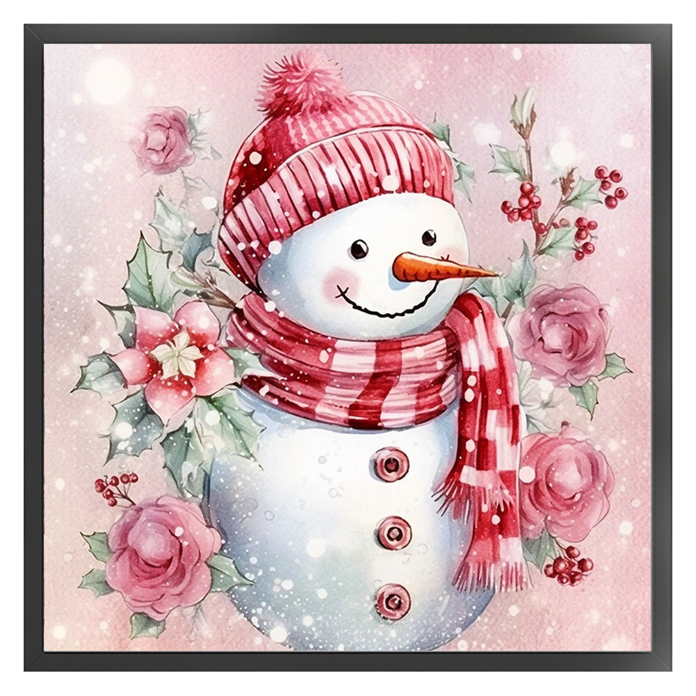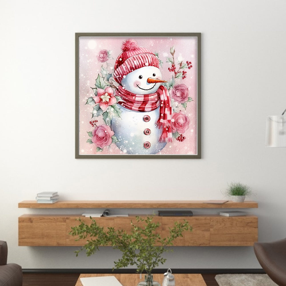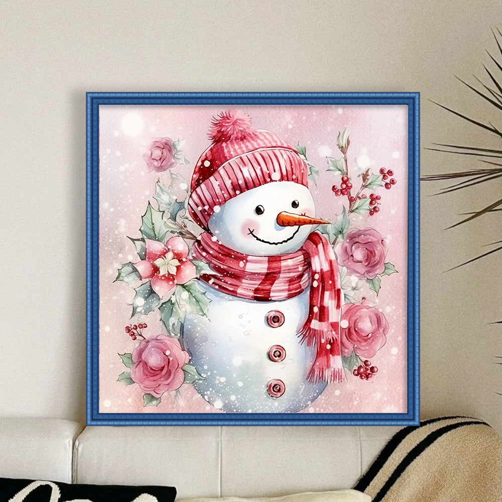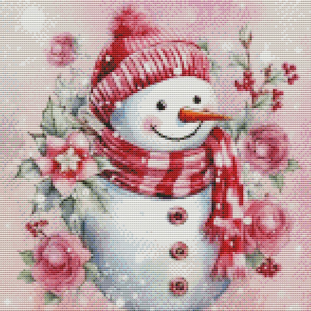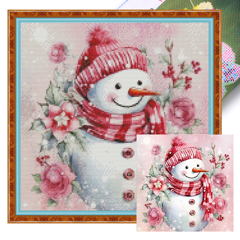 Pink Snowman - 11CT Stamped Cross Stitch 40*40CM