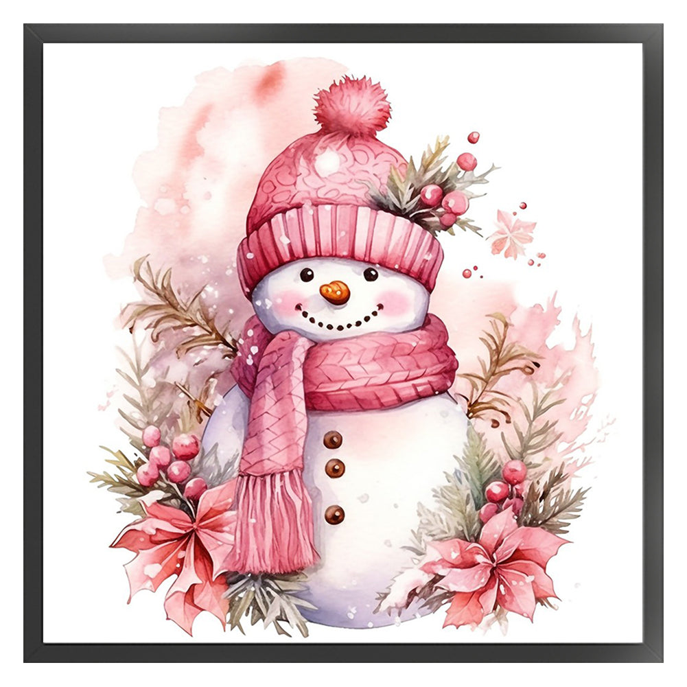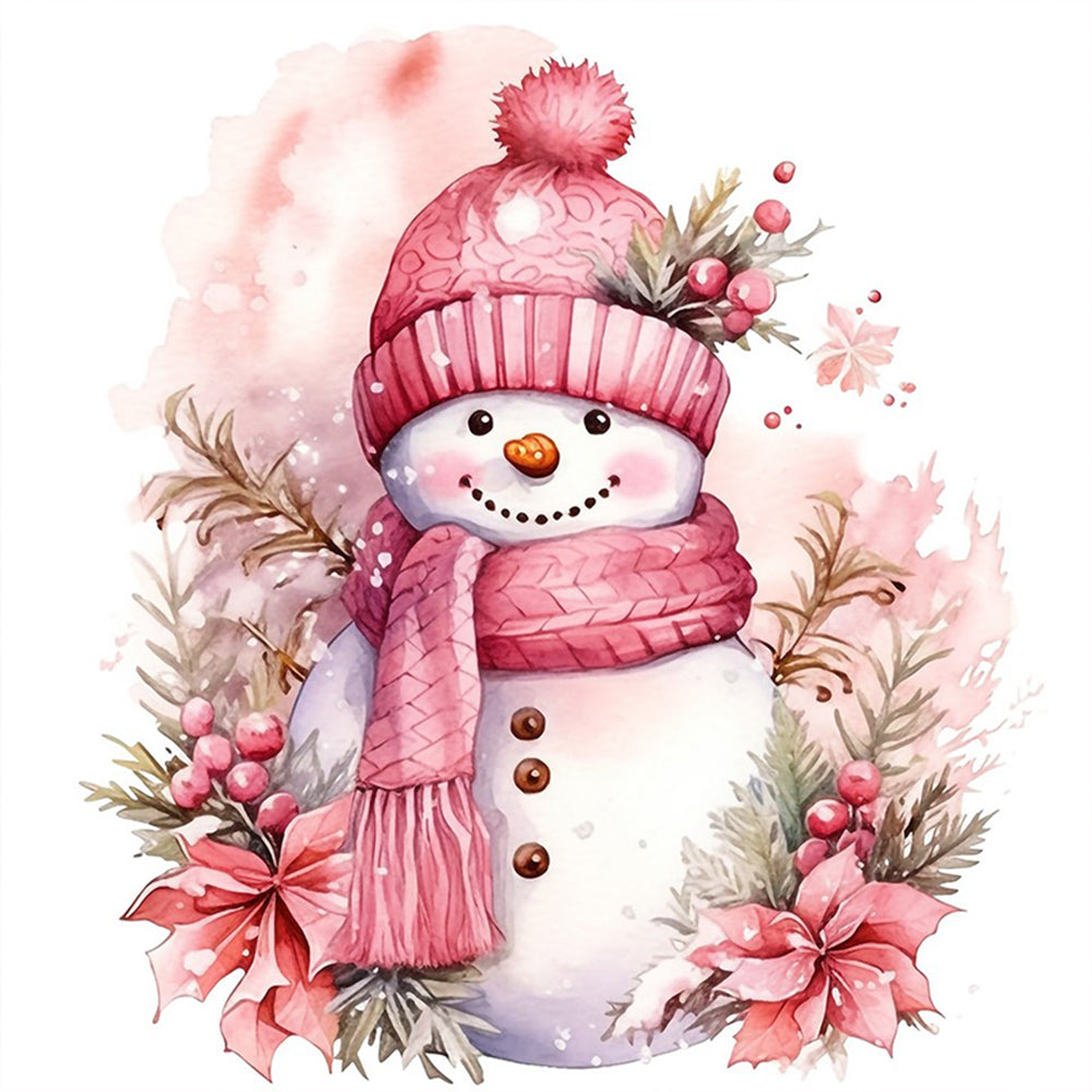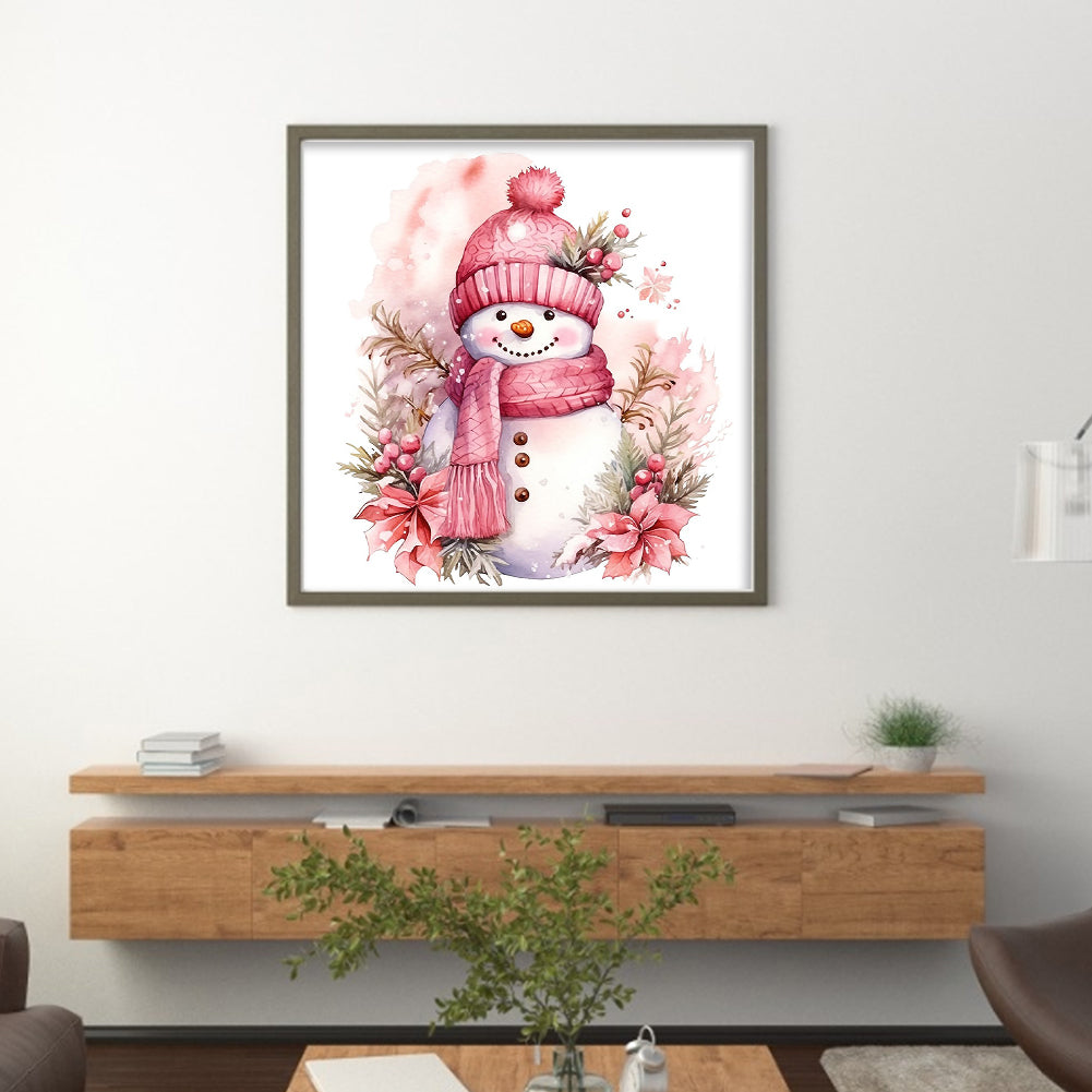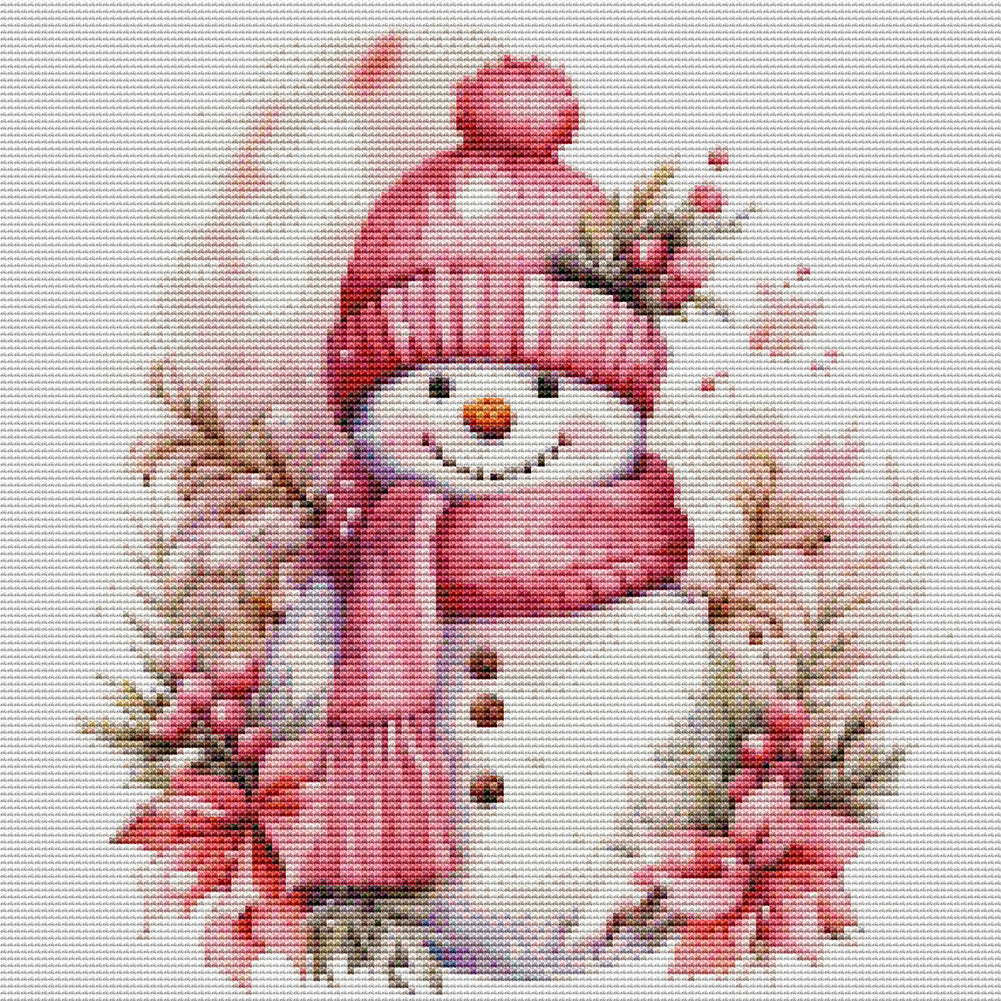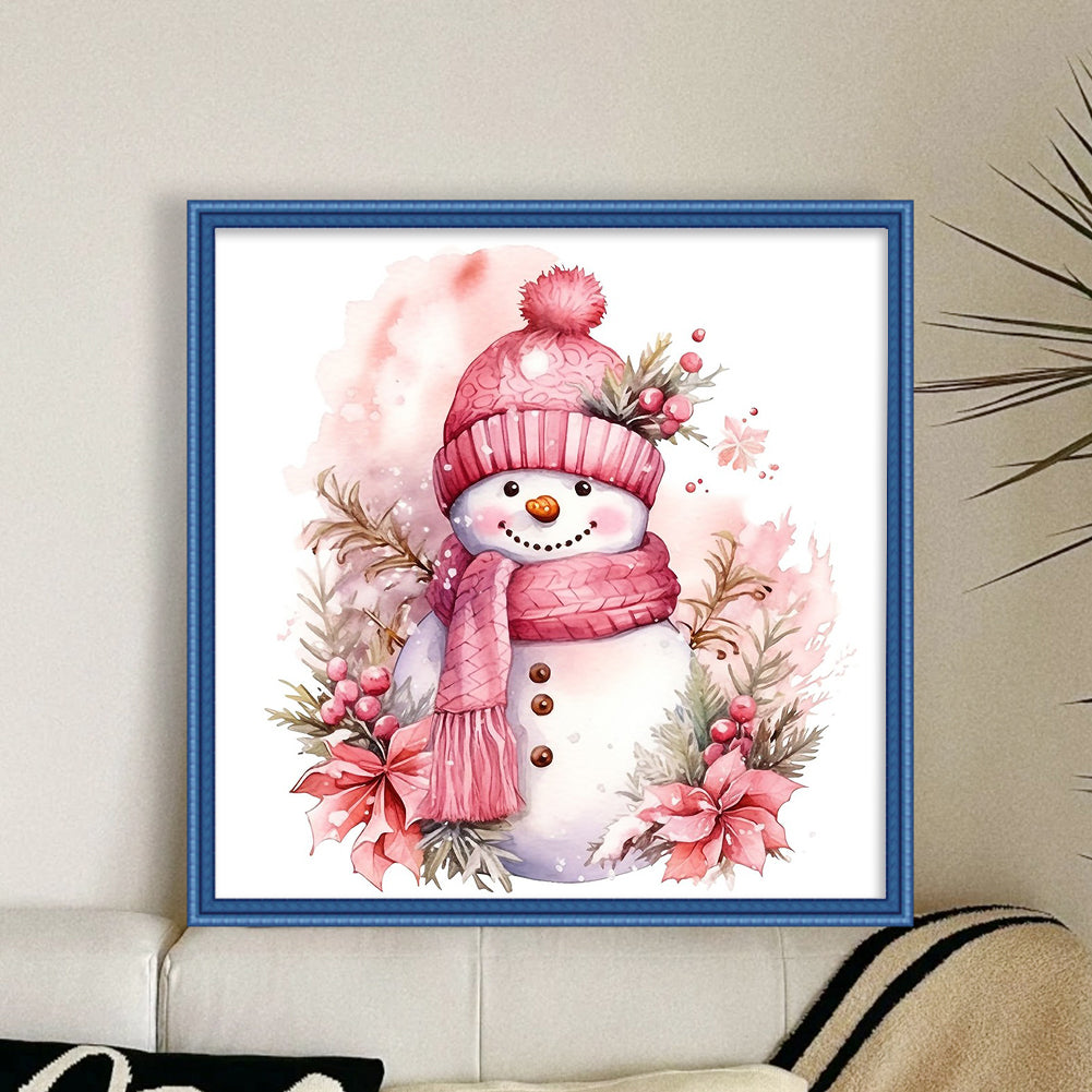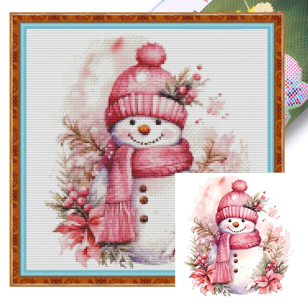 Pink Snowman - 11CT Stamped Cross Stitch 40*40CM