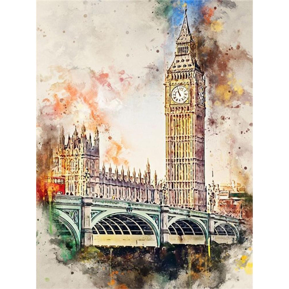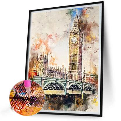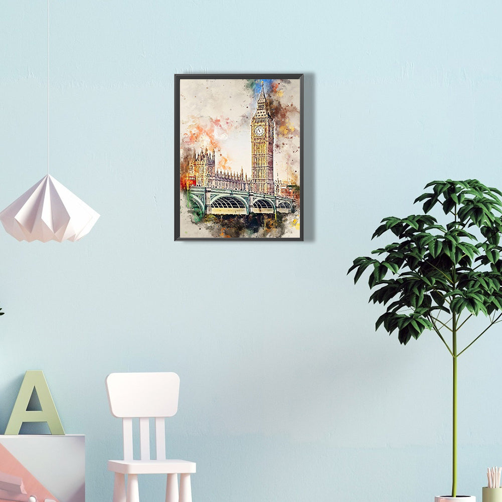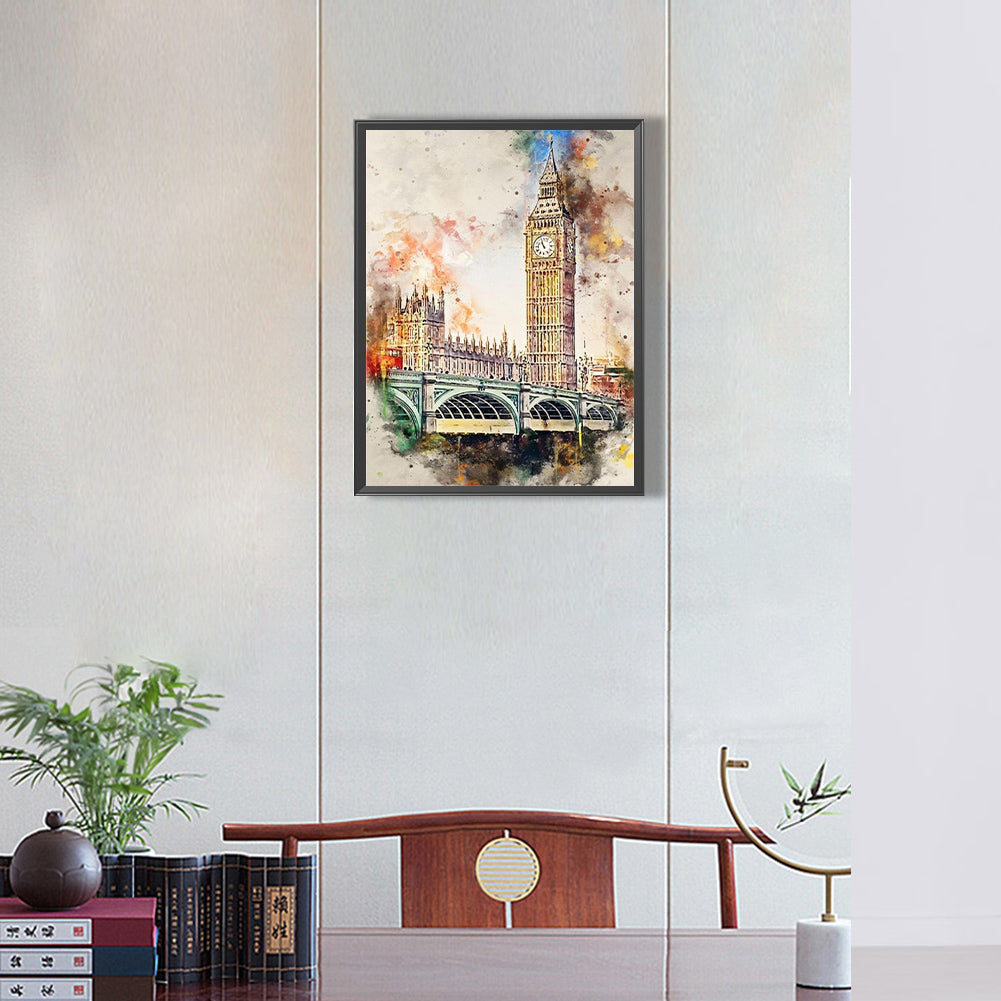 Places Of Interest In Watercolor Style - Full Round Drill Diamond Painting 30*40CM