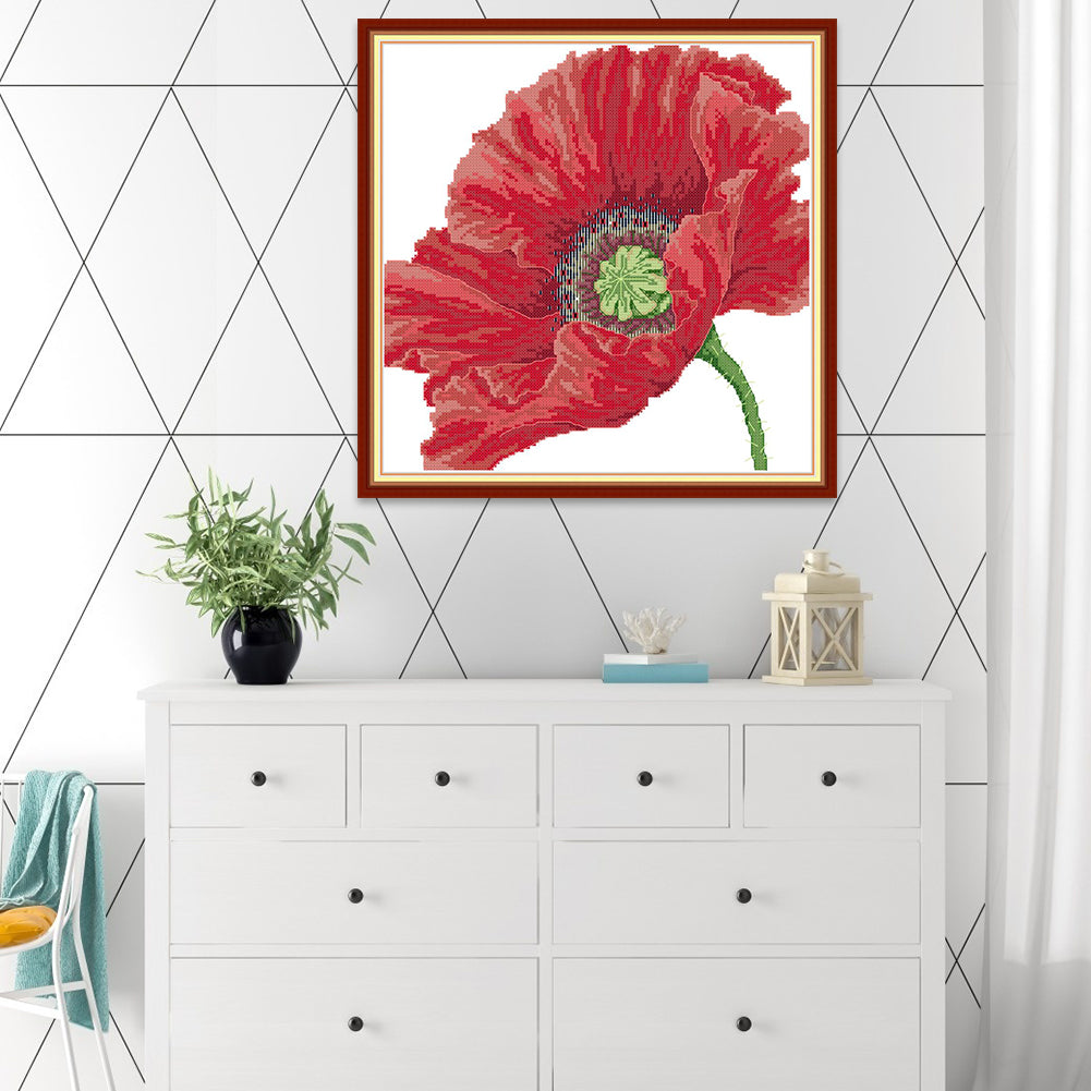 Poppy - 14CT Stamped Cross Stitch 33*33CM