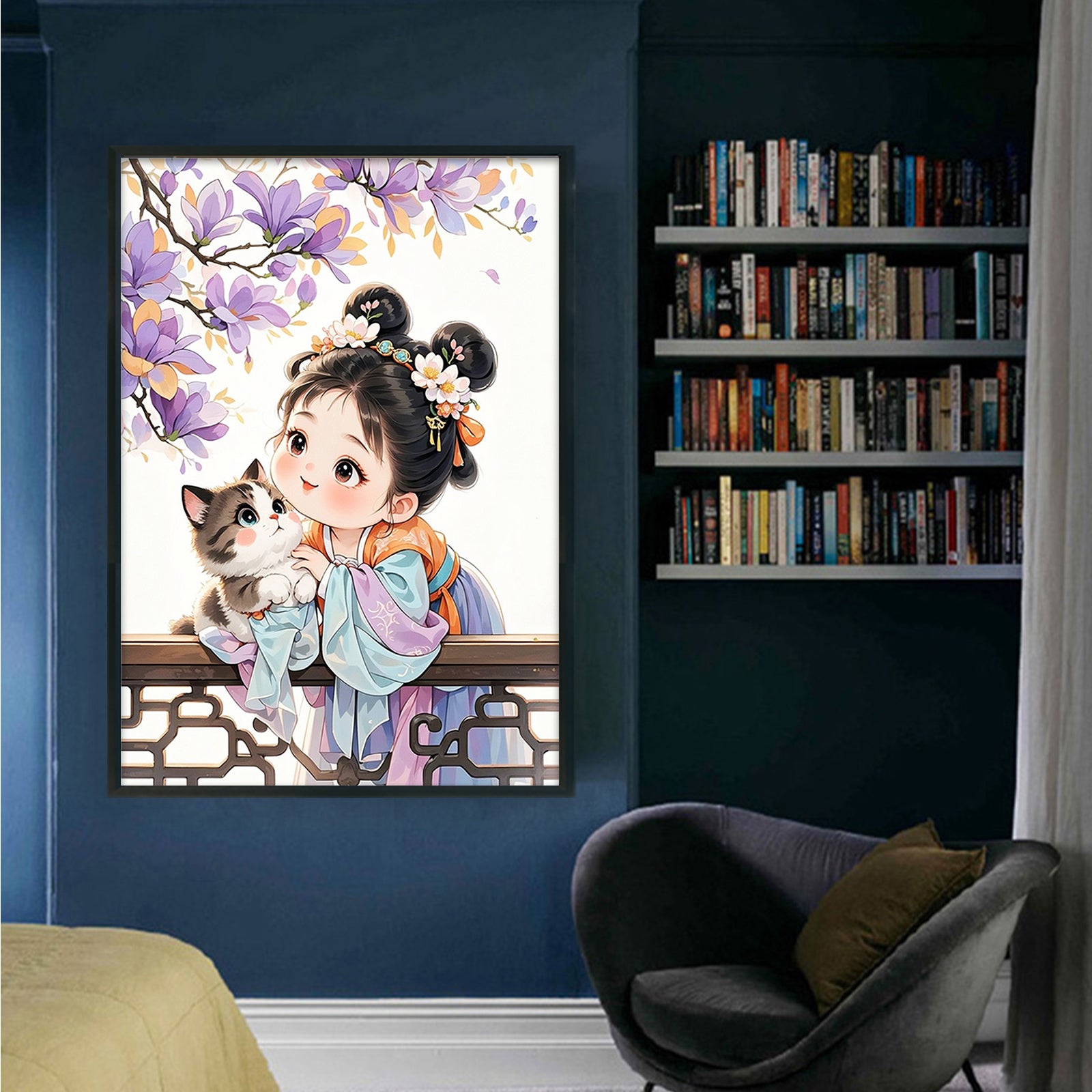 Princess Ziwei And Her Cat - 11CT Stamped Cross Stitch 50*70CM(Mona Lisa Brand)