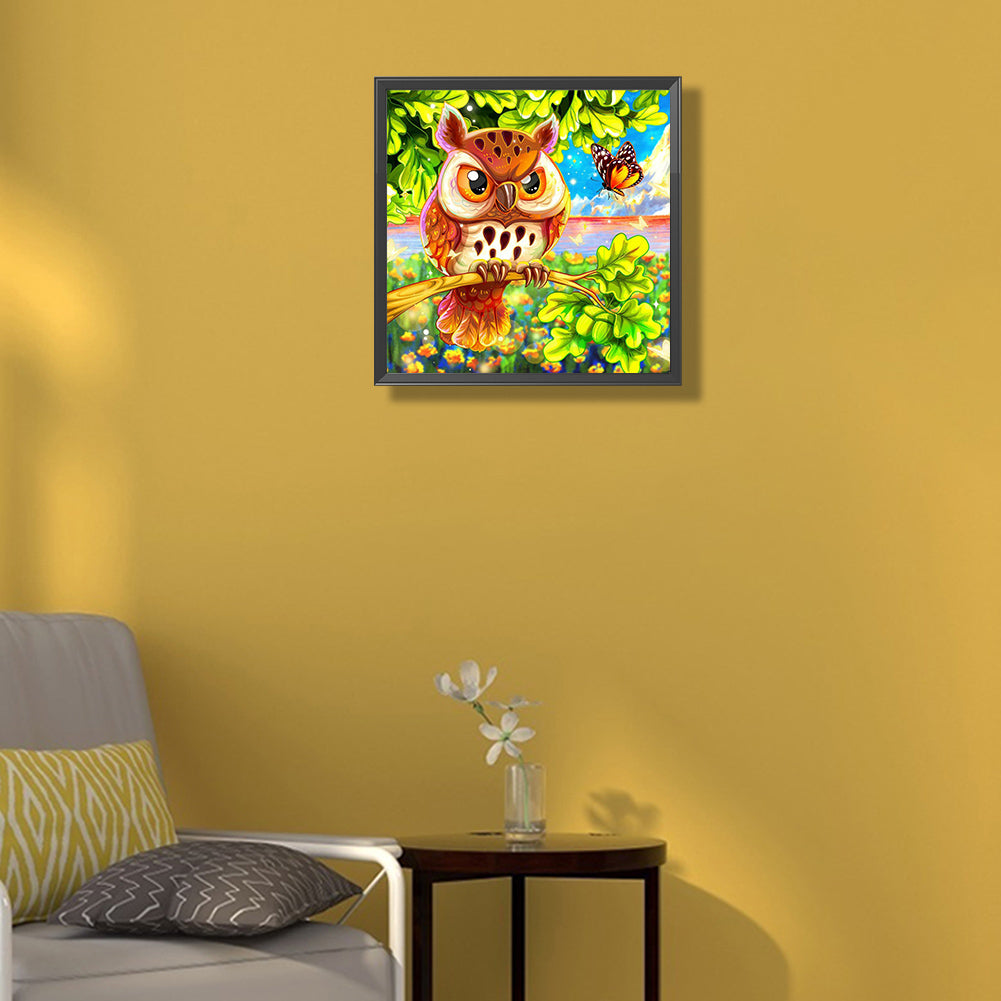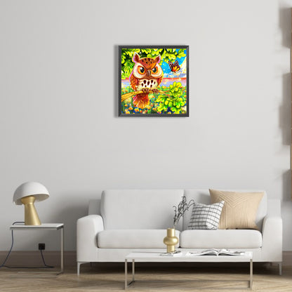 Proud Owl With Butterflies - Full Round Drill Diamond Painting 30*30CM