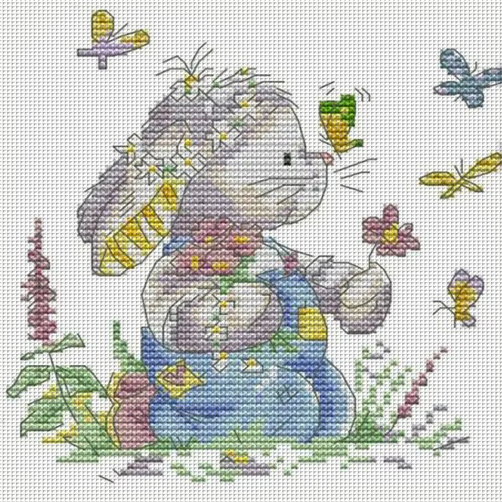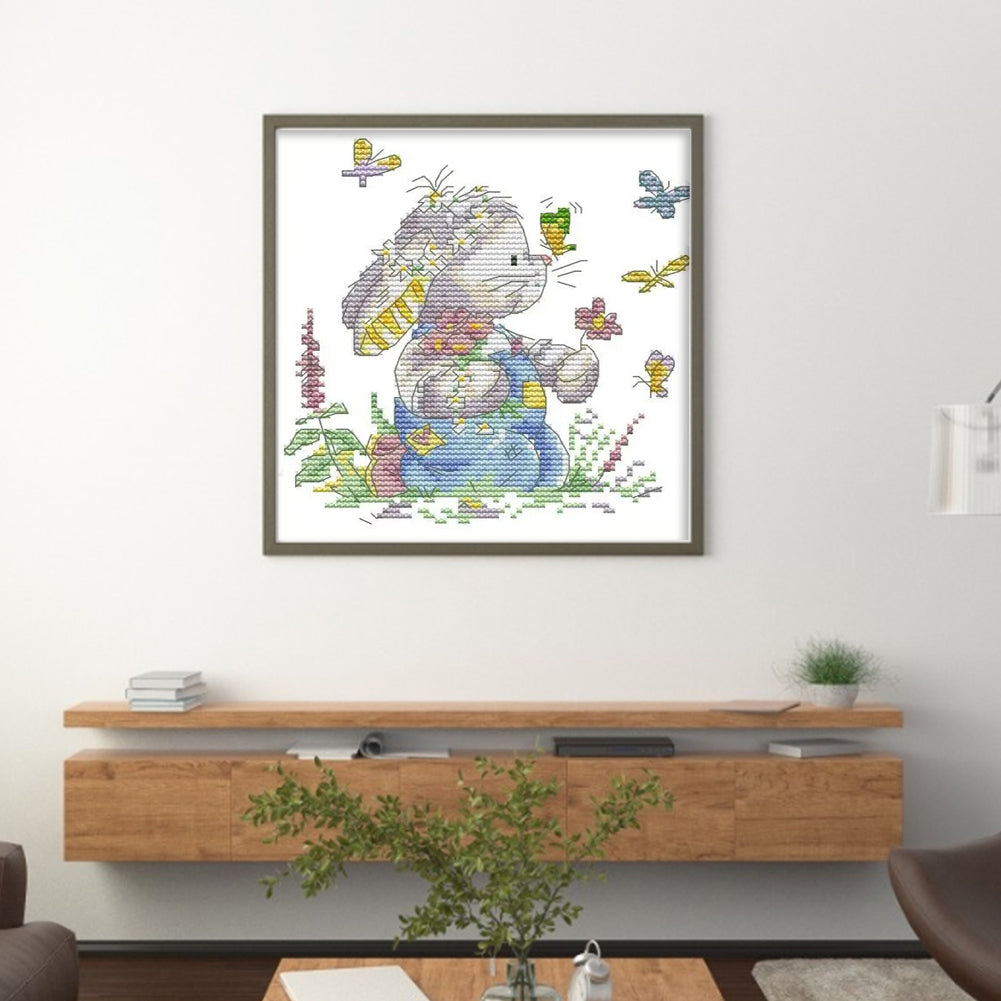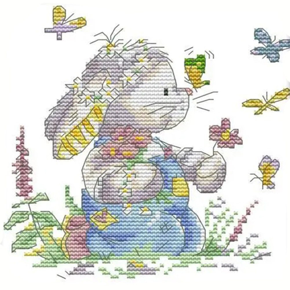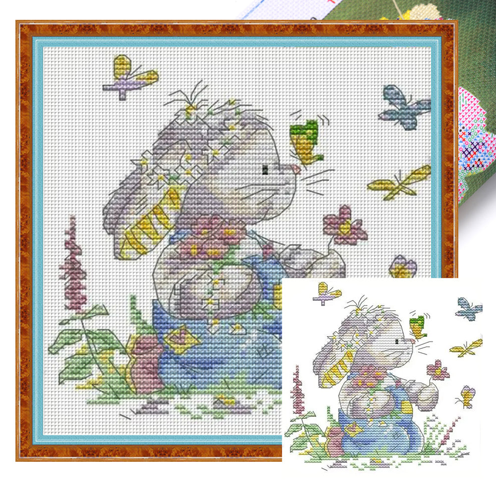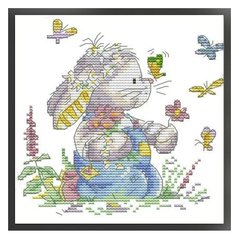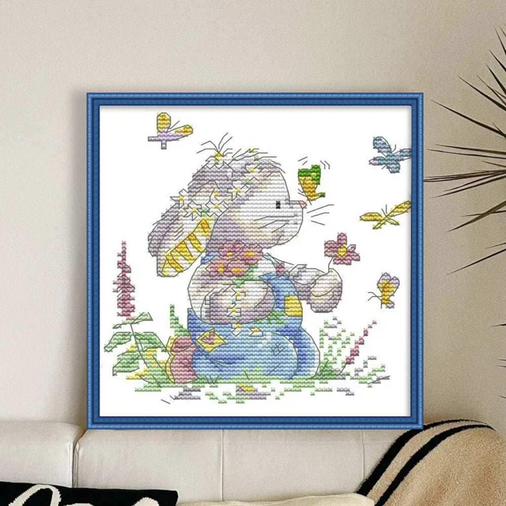 Rabbit And Butterfly 2 - 14CT Stamped Cross Stitch 18*19CM