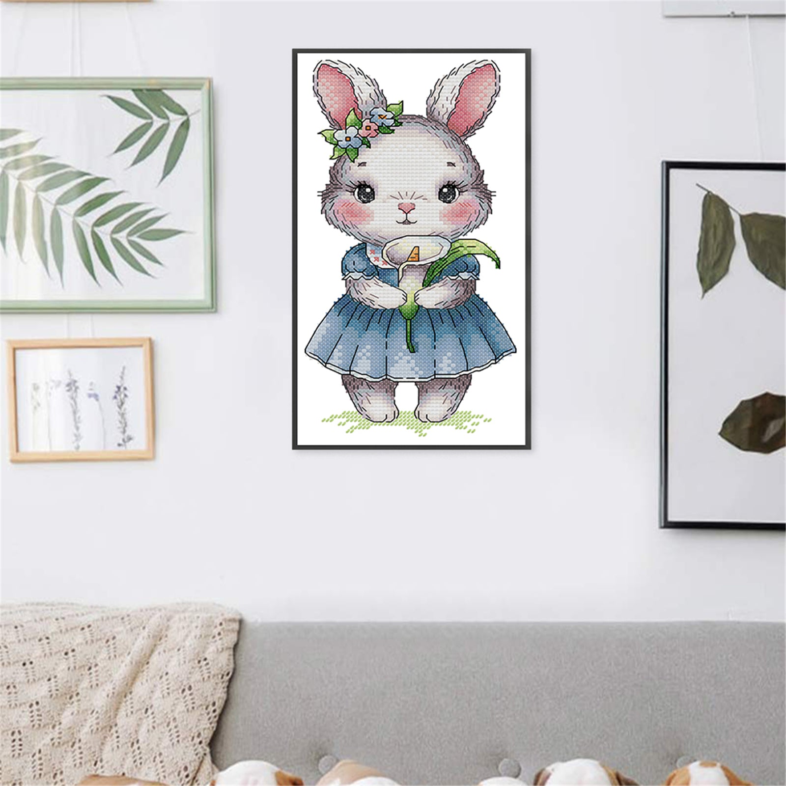Rabbit And Calla Lily - 14CT Stamped Cross Stitch 15*27CM (Joy Sunday)