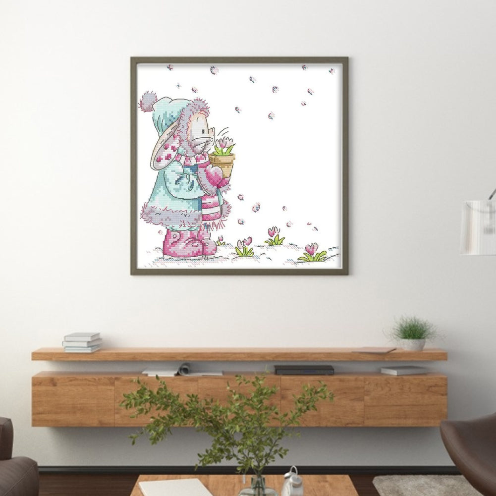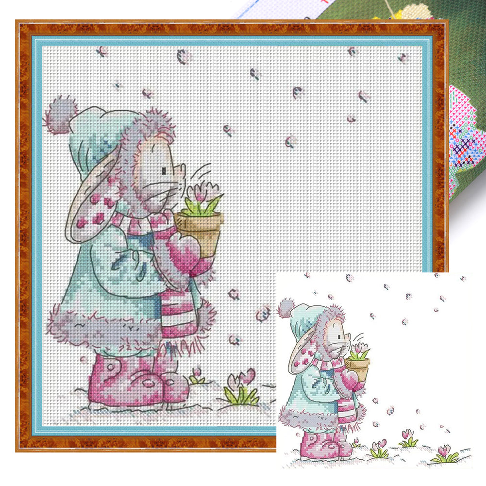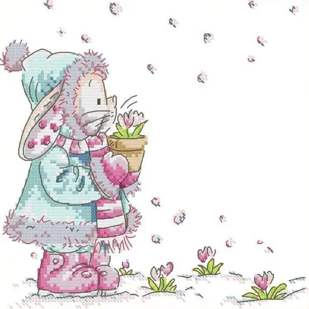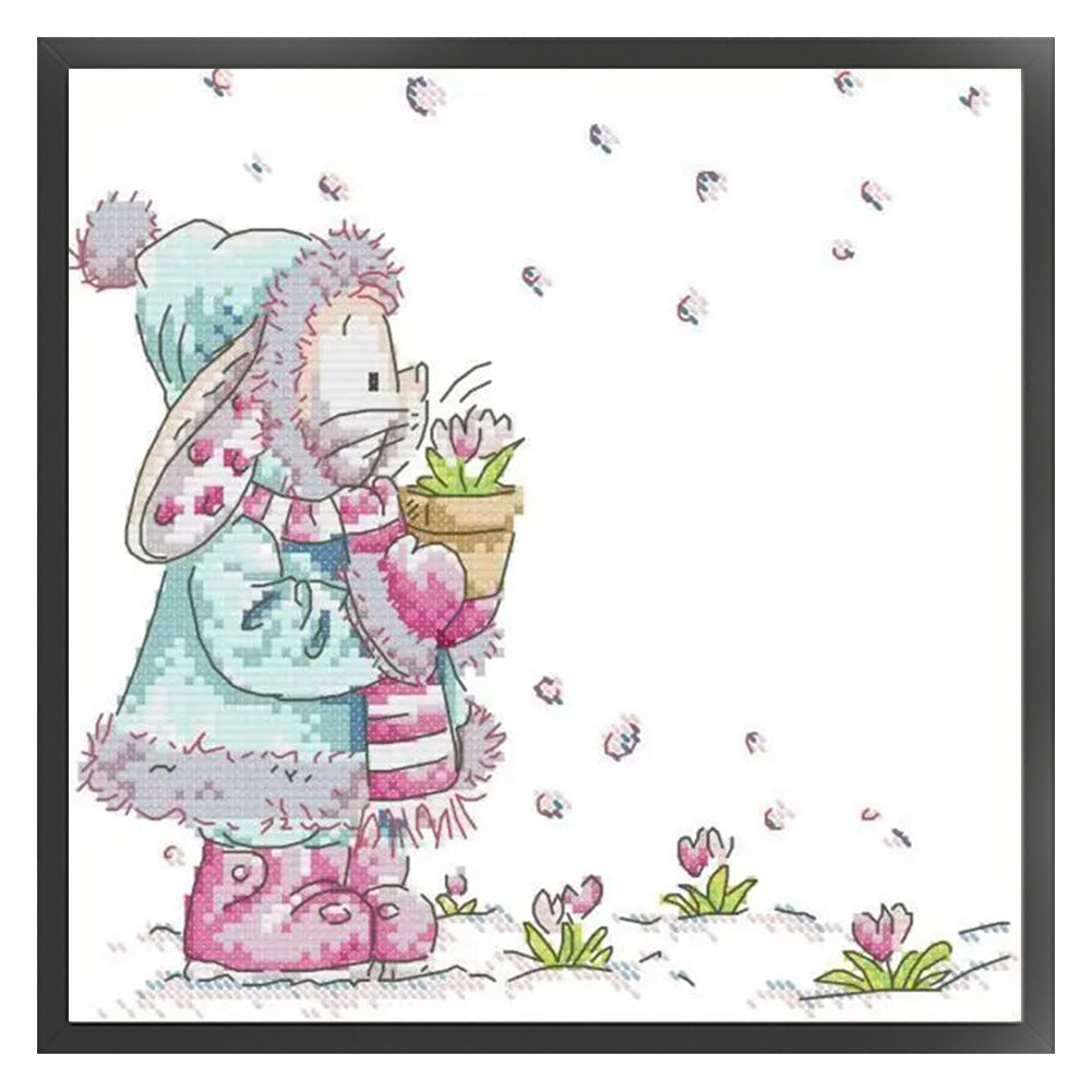 Rabbit And Flowers - 14CT Stamped Cross Stitch 22*25CM