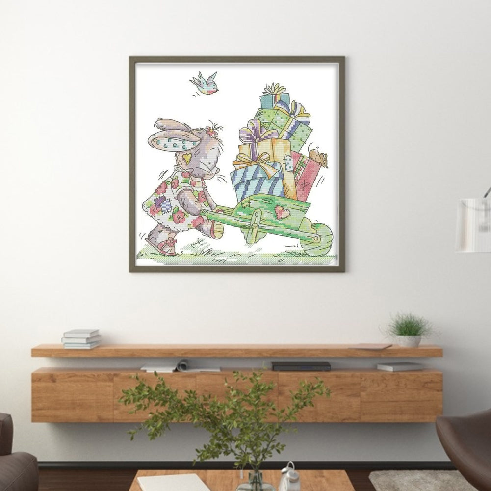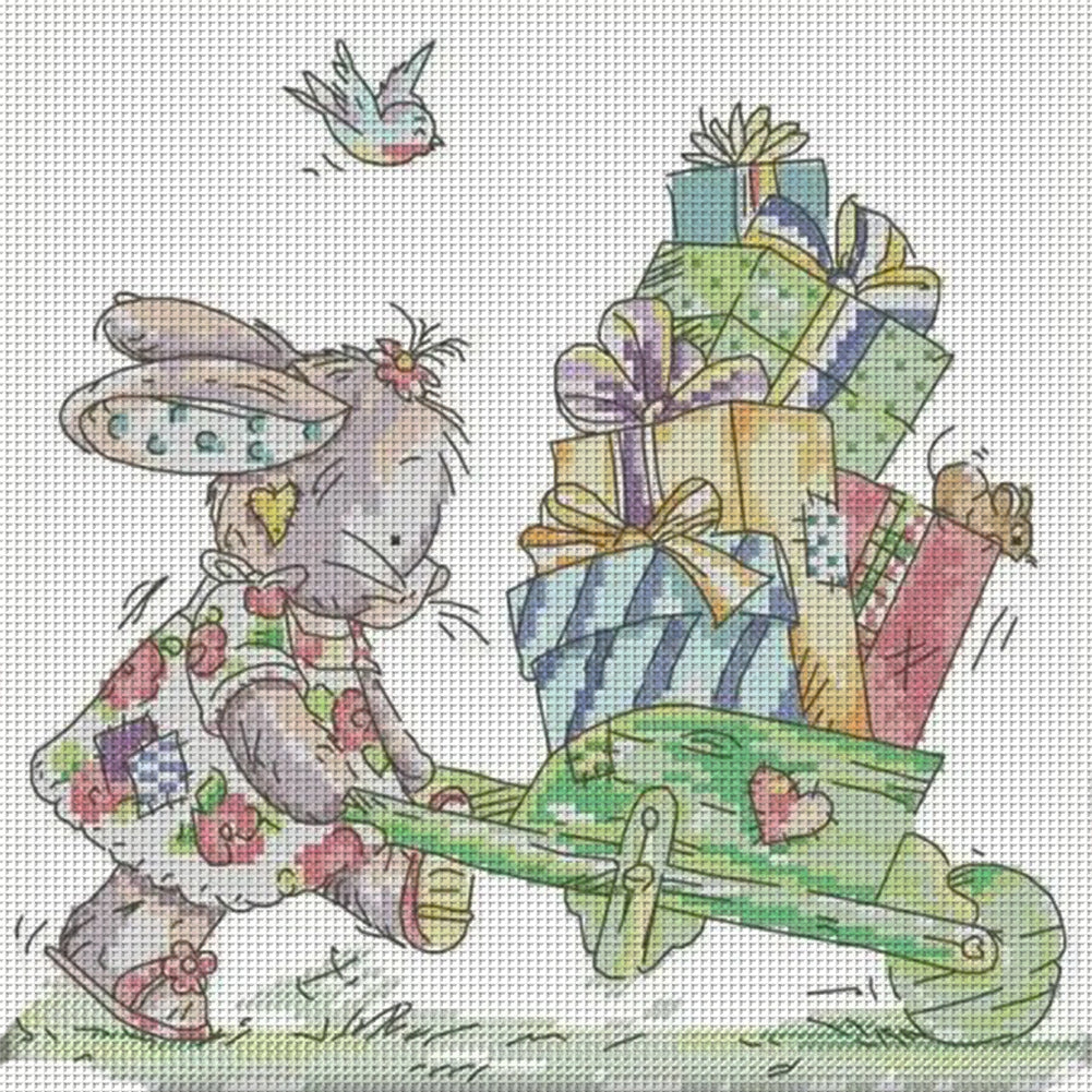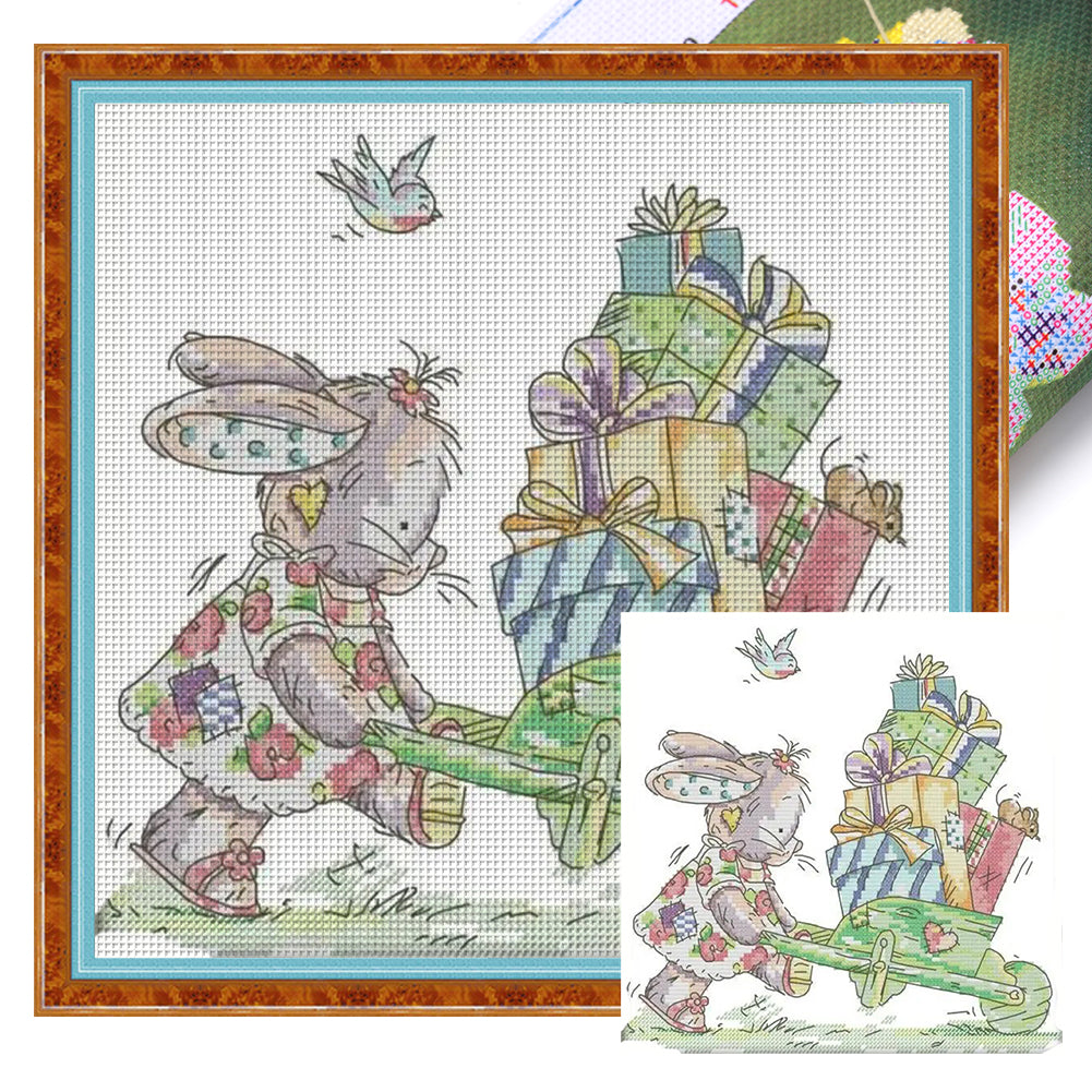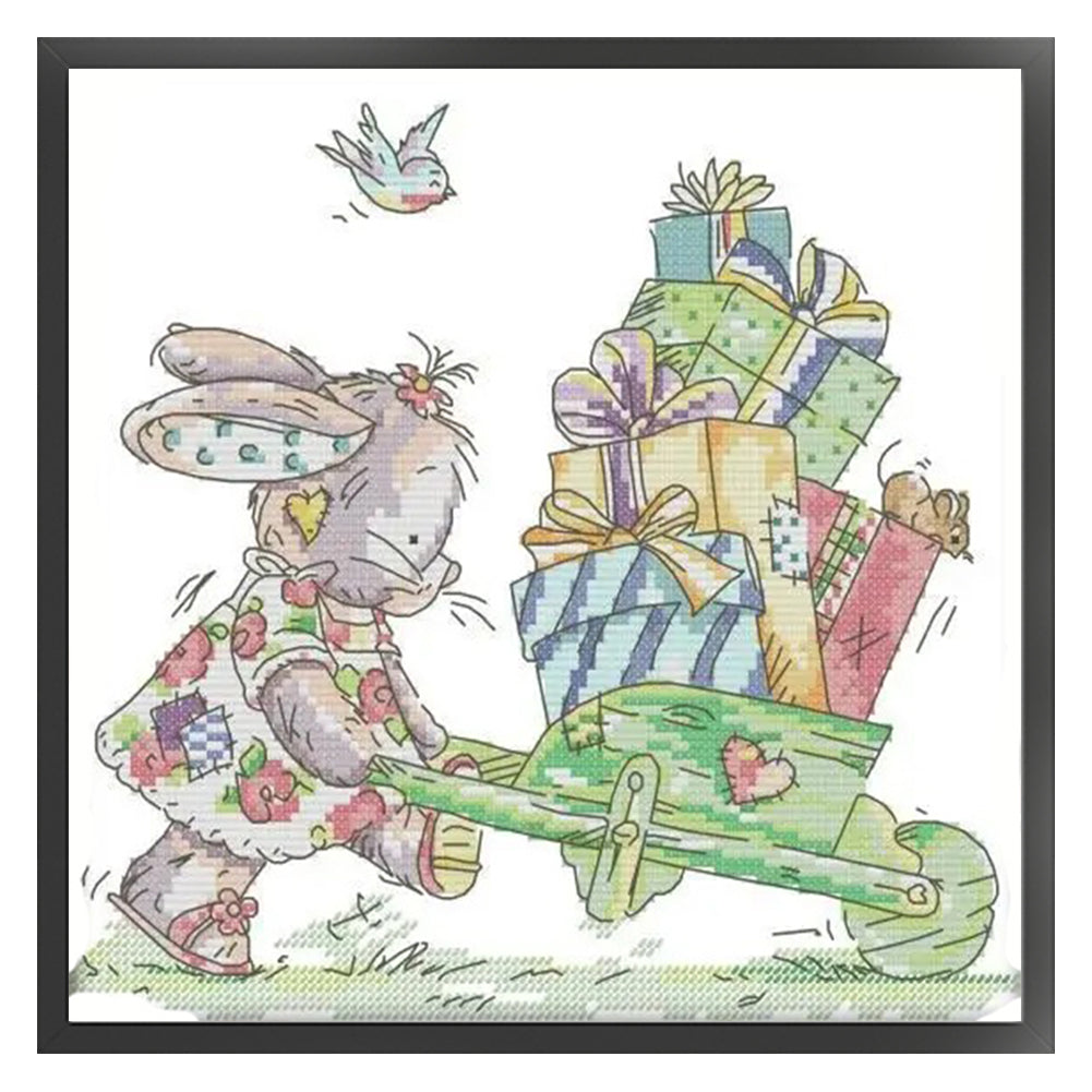 Rabbit And Gift - 14CT Stamped Cross Stitch 28*27CM