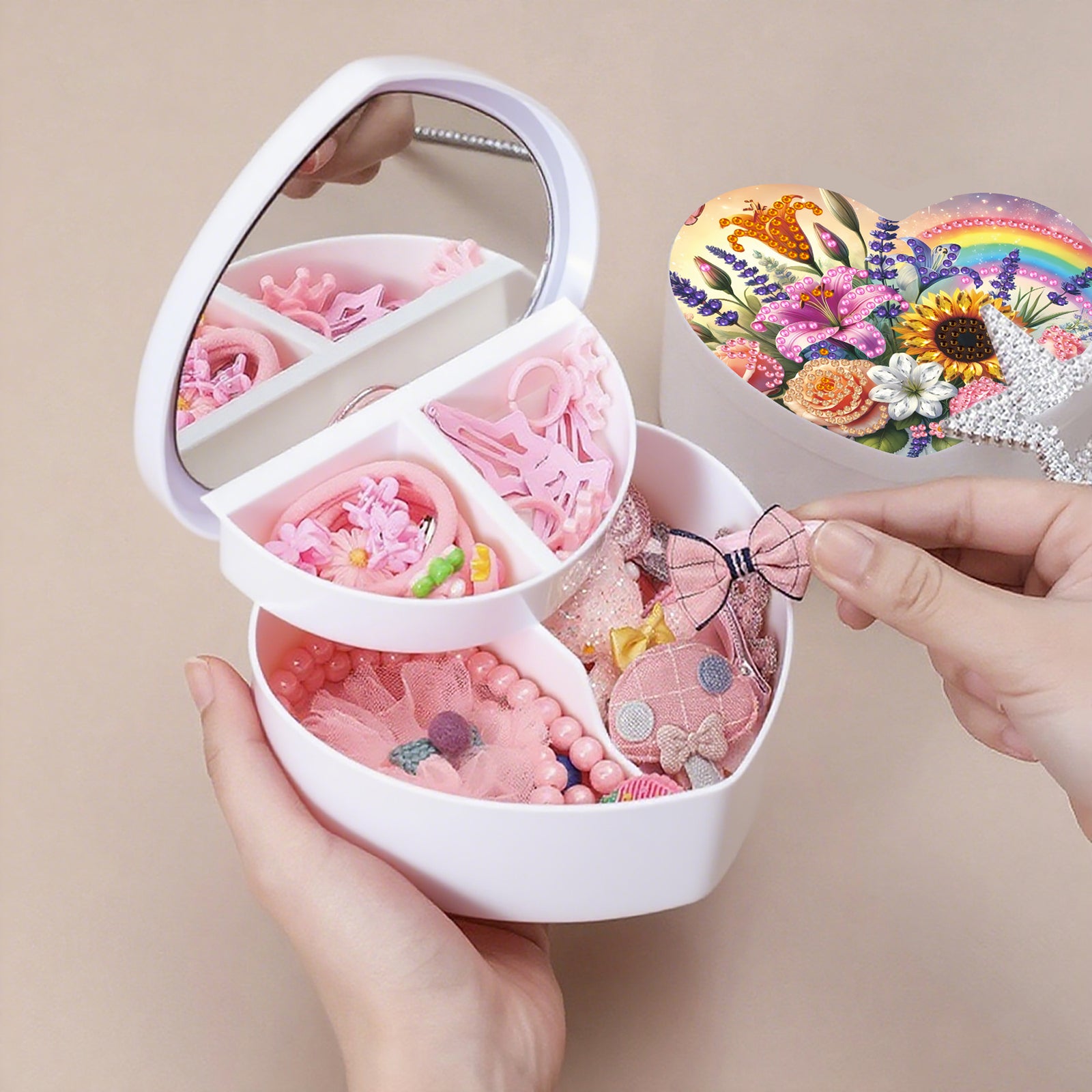 Rainbow DIY Diamond Painting Heart-Shaped Jewelry Box Decorative Storage Case
