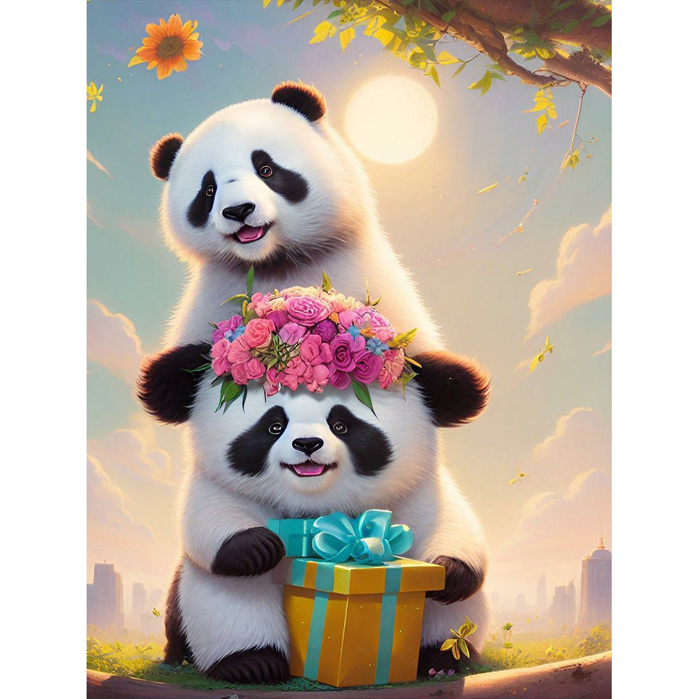 Little Panda And Panda Mother - Full Round Drill Diamond Painting 30*30CM