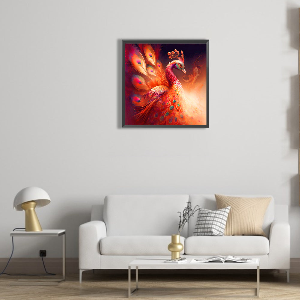 Red Peacock - Full Round Drill Diamond Painting 30*30CM