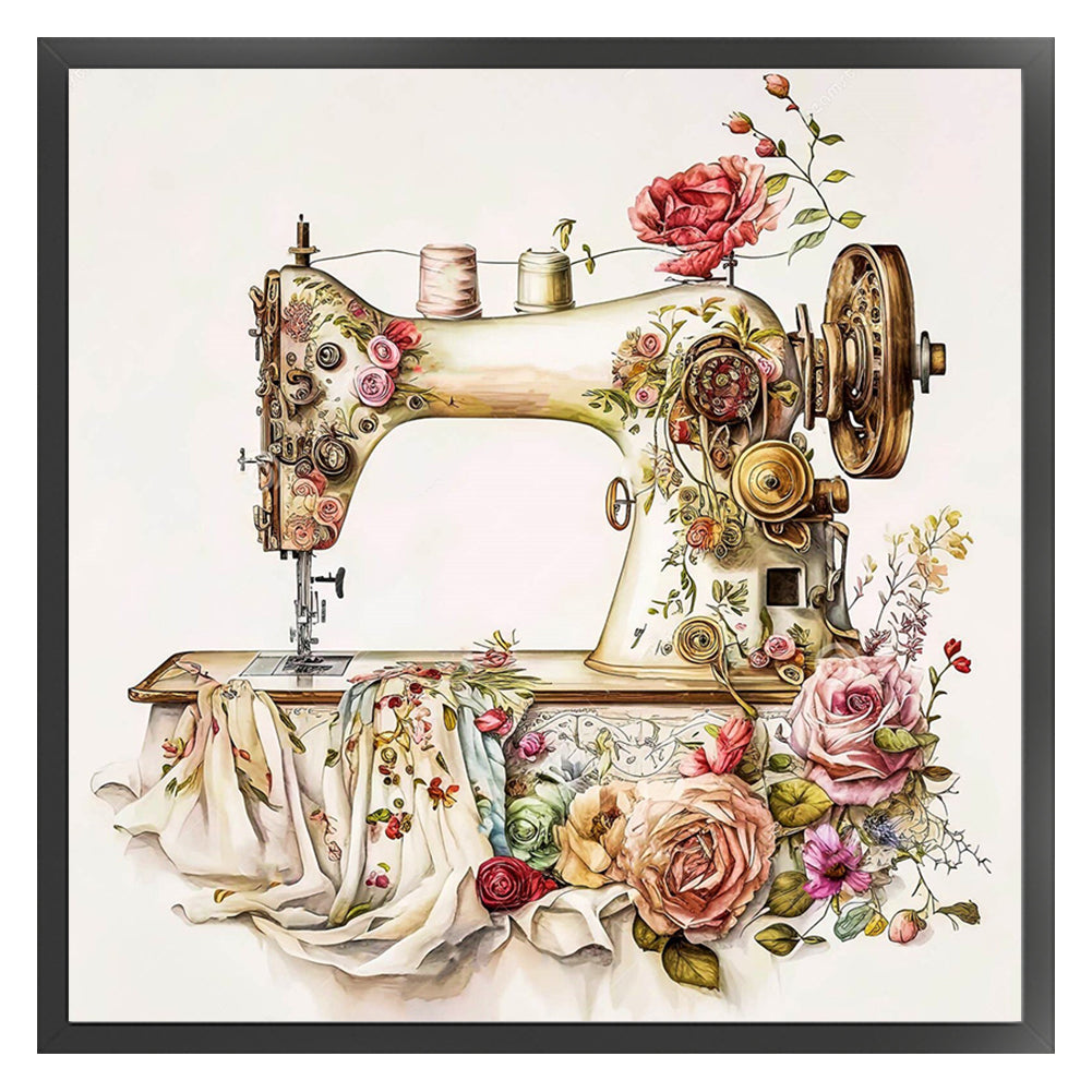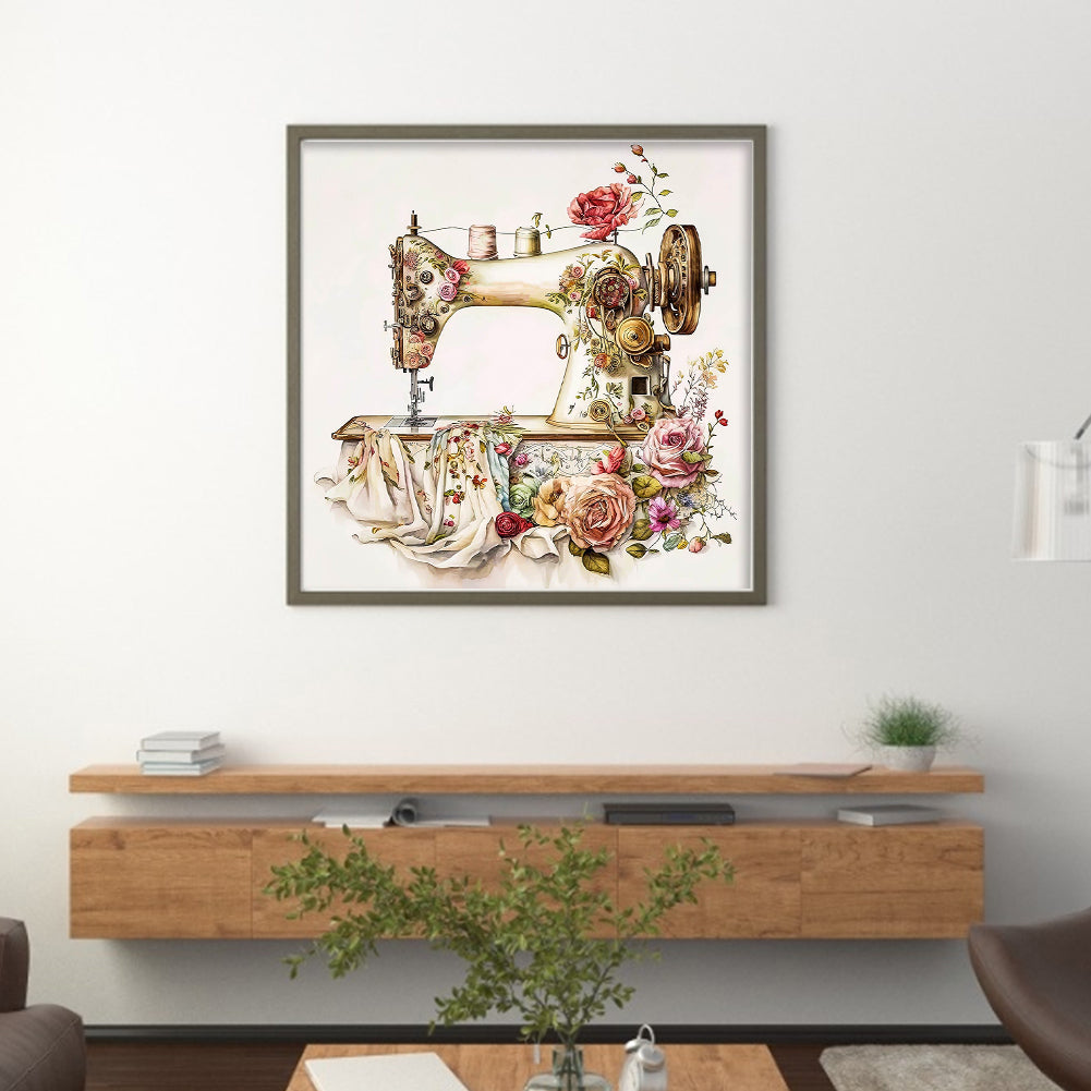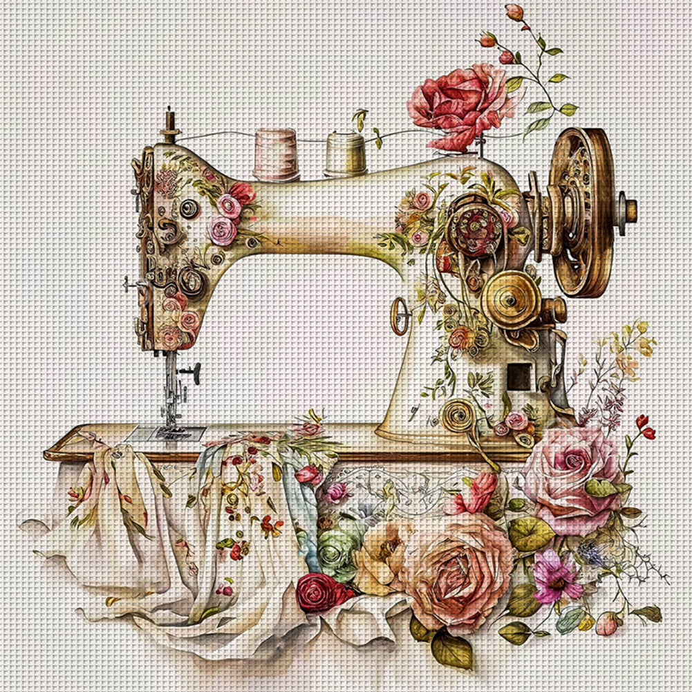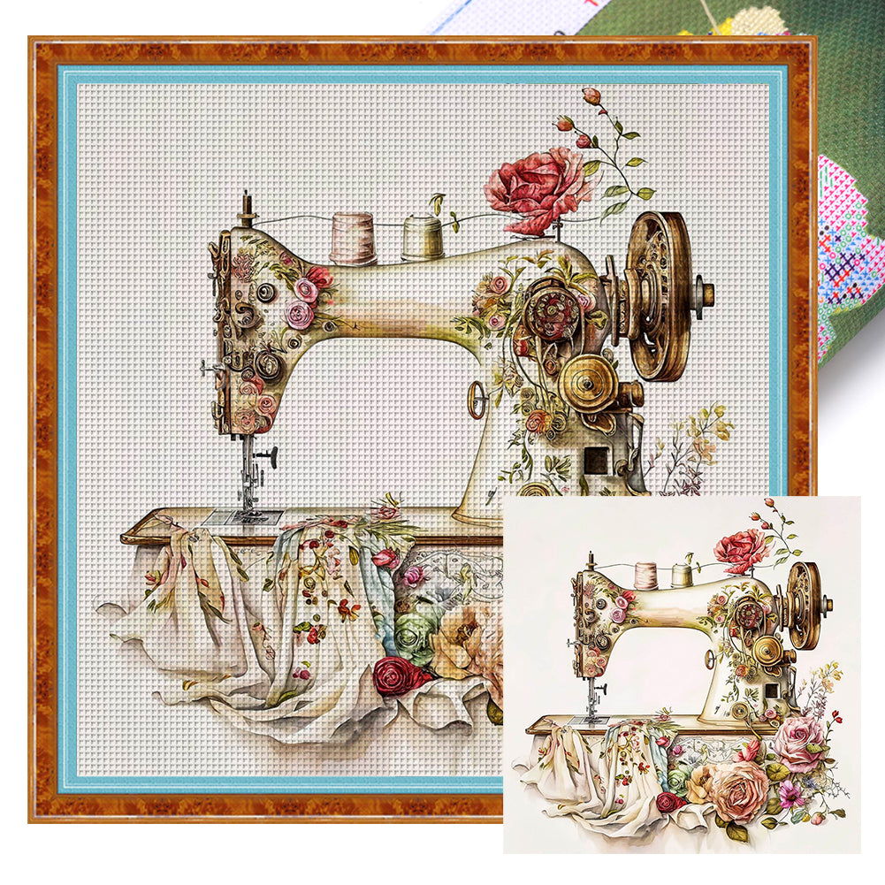 Retro Flower Sewing Machine - 14CT Stamped Cross Stitch 40*40CM