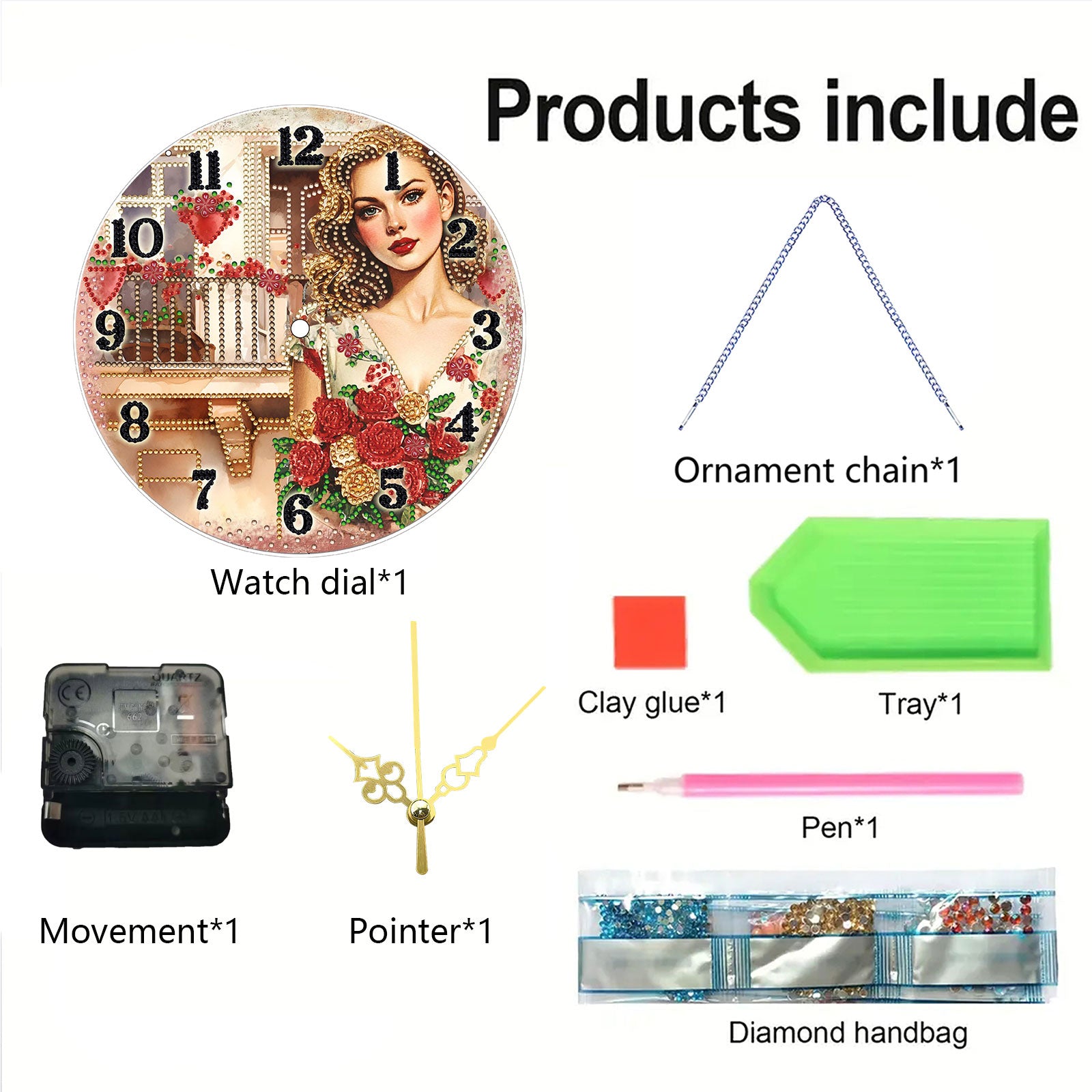Retro Girl 2D Flat DIY Acrylic Diamonds Painting Clocks Home Bedroom Decor