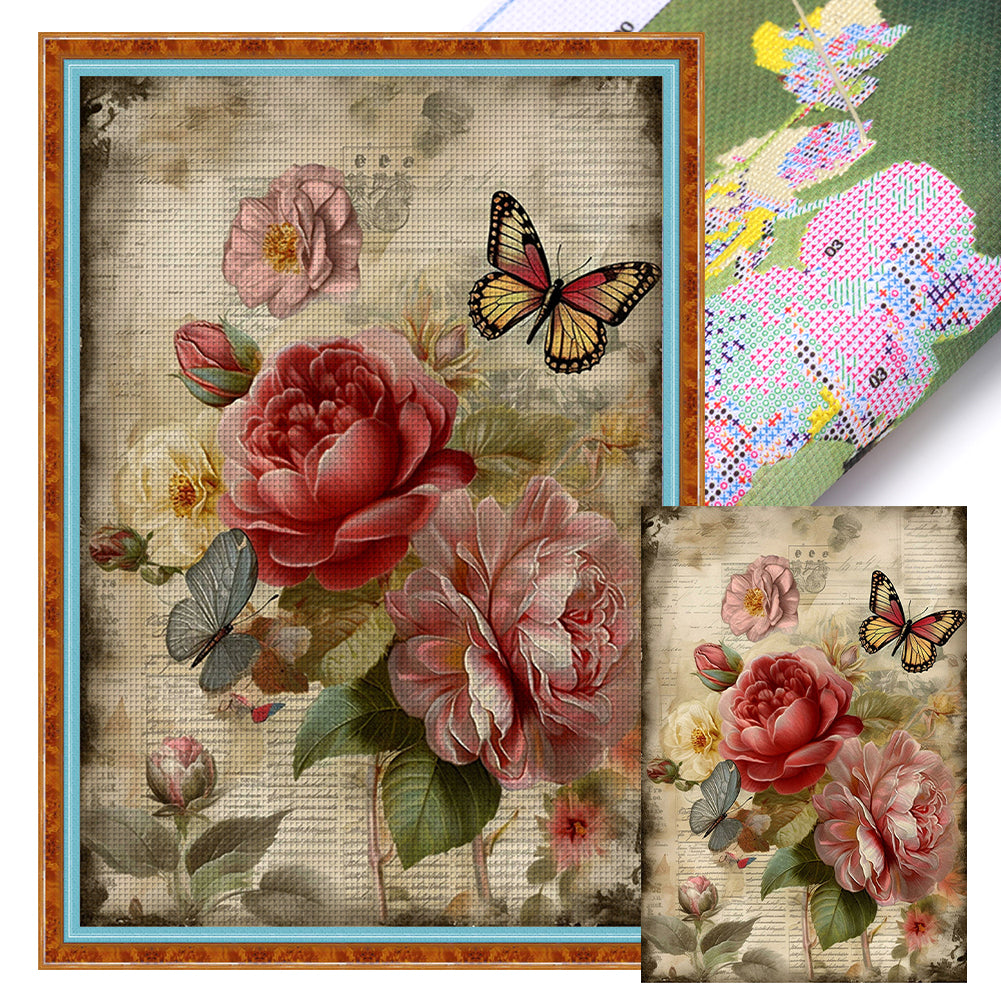 Retro Poster - Flowers And Butterflies - 11CT Stamped Cross Stitch 40*60CM