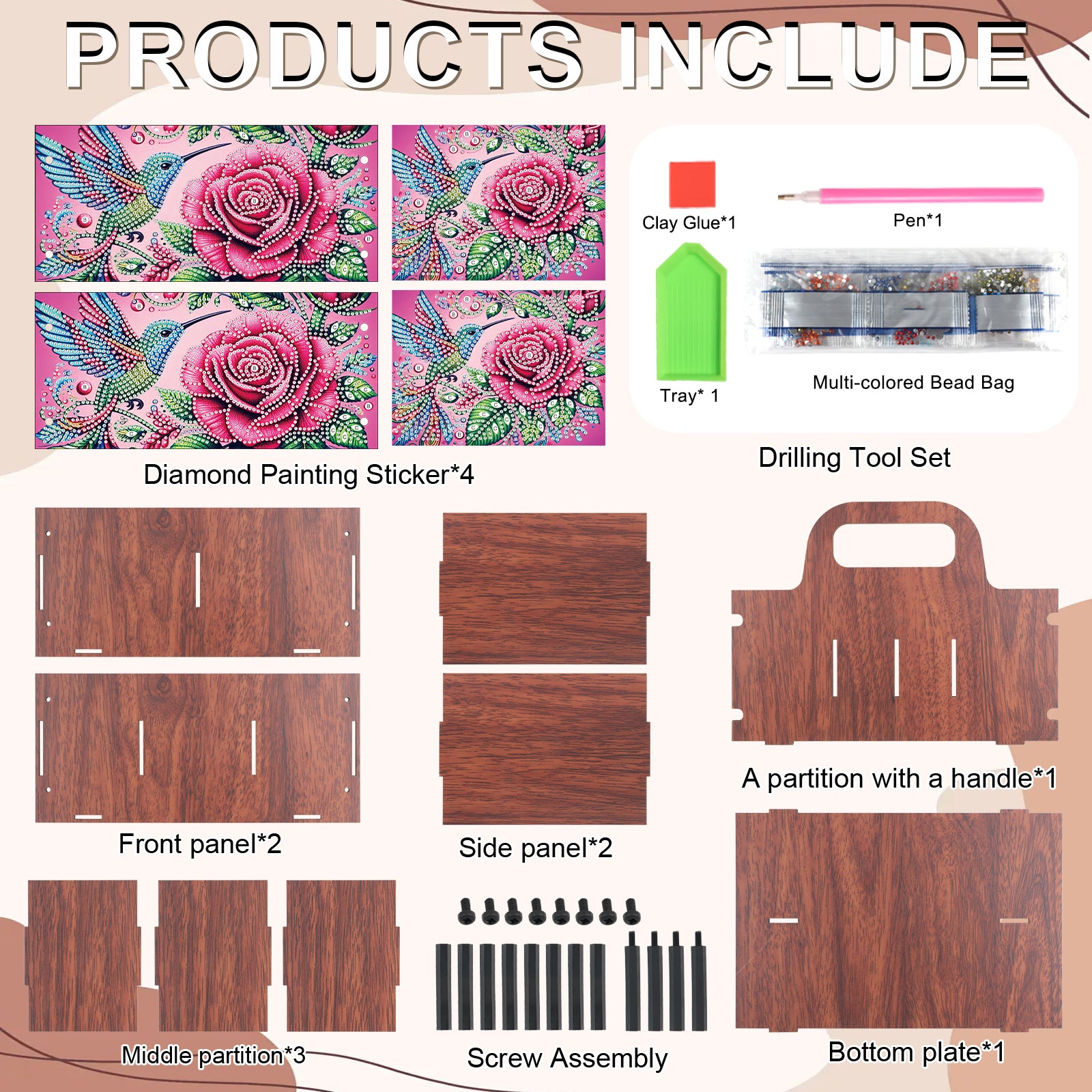 Rose DIY Wooden Diamond Art Painting Storage Box with Handheld Home Decor