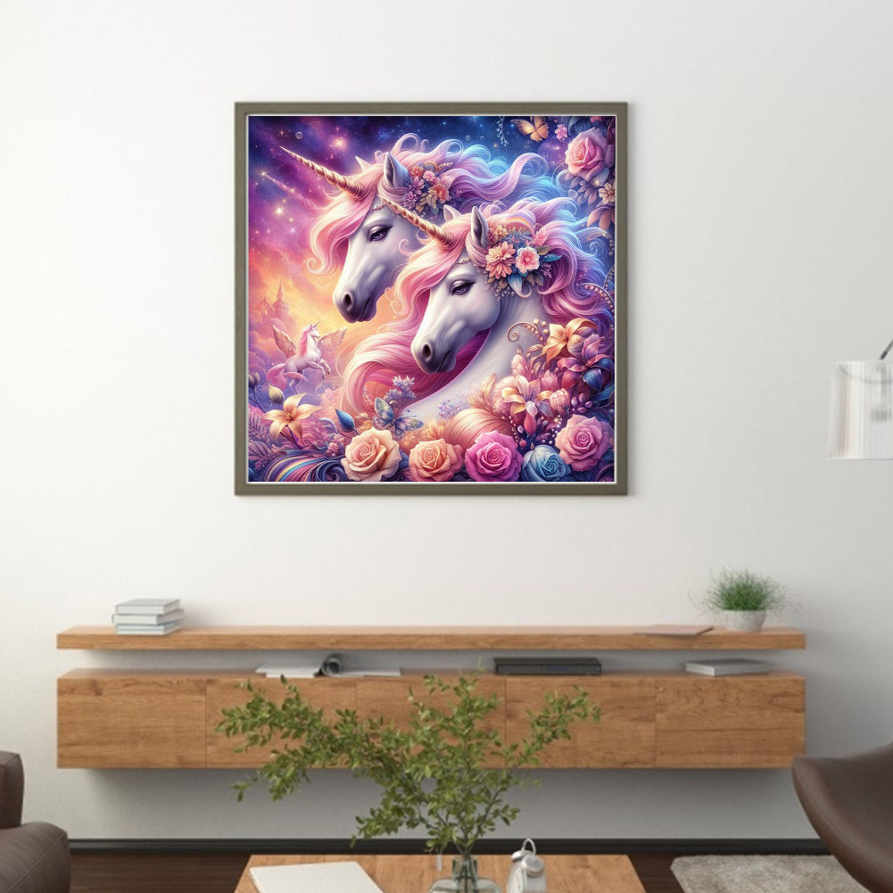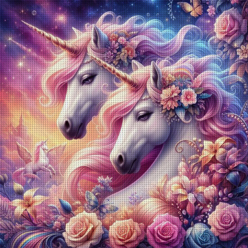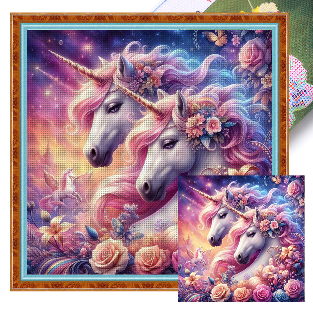 Rose Unicorn - 18CT Stamped Cross Stitch 50*50CM