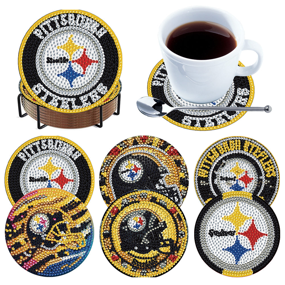Rugby Team 6pcs DIY Diamond Painting Coasters W/ Holder for Beginner Adult Gift