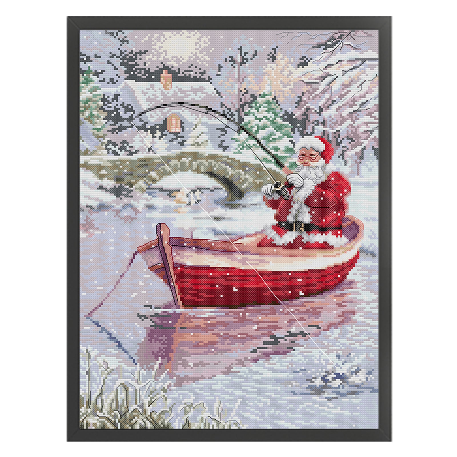 Santa Claus Fishing - 14CT Stamped Cross Stitch 33*44CM (Joy Sunday)