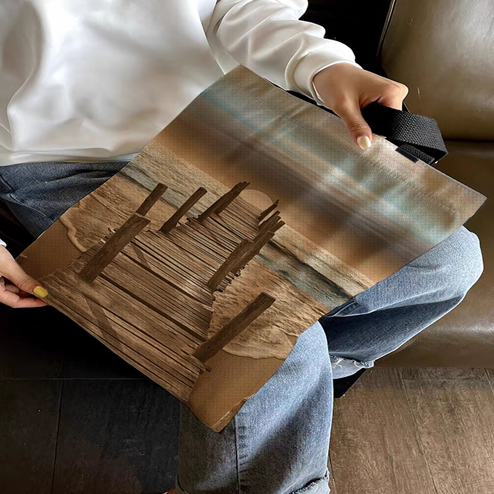 Seaside Boardwalk Canvas Tote Bag Embroidery Kit 11CT Print 40*40cm for Beginner