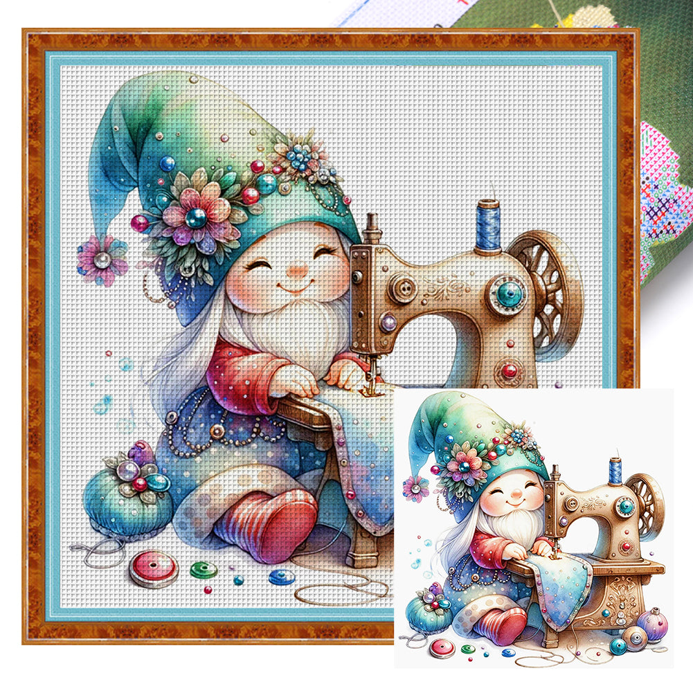 Sewing Machine Gnome - 18CT Stamped Cross Stitch 30*30CM