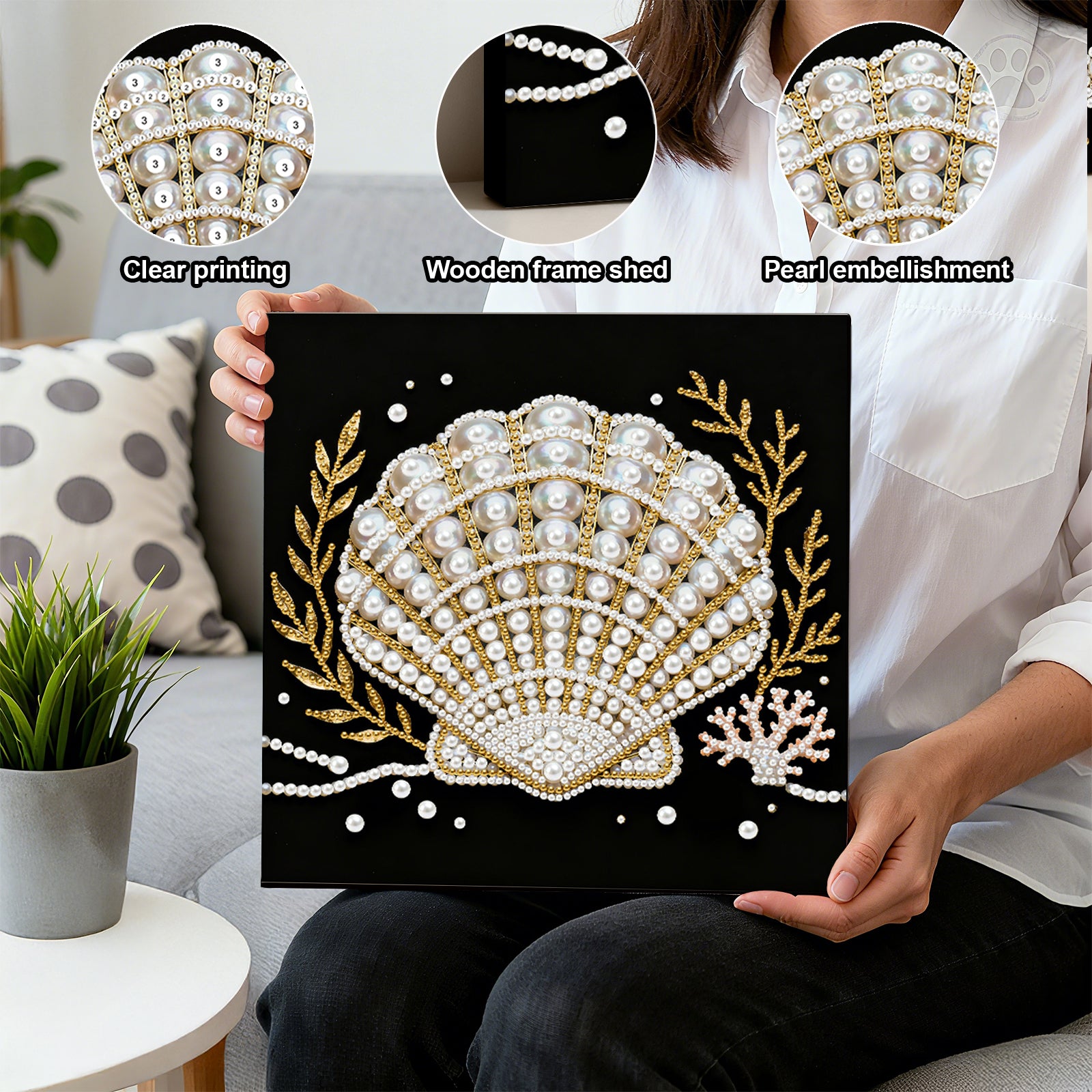 Shells - DIY Pearl Gem Art Diamond Painting Kits With Framefor Home Decor -25x25cm