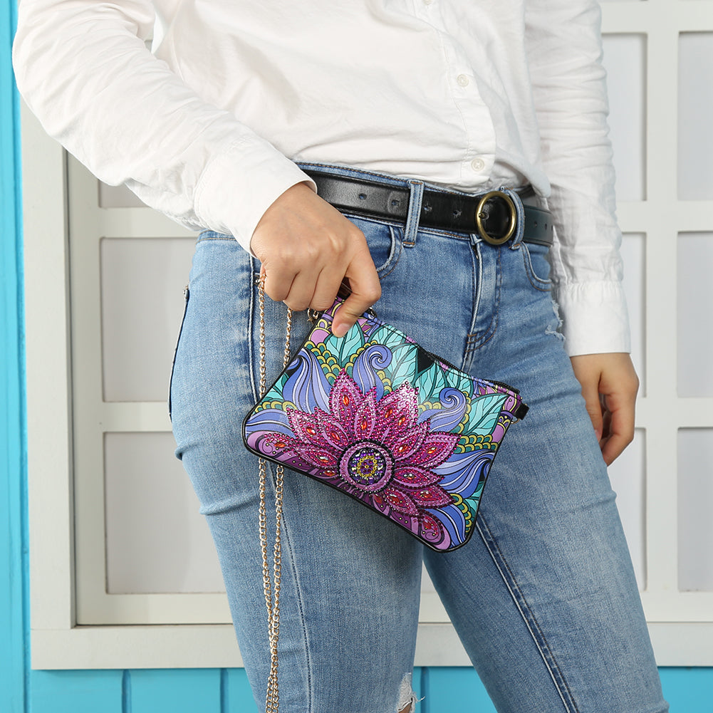DIY Flower Special Shape Diamond Painting Leather Clutch Chain Shoulder Bag