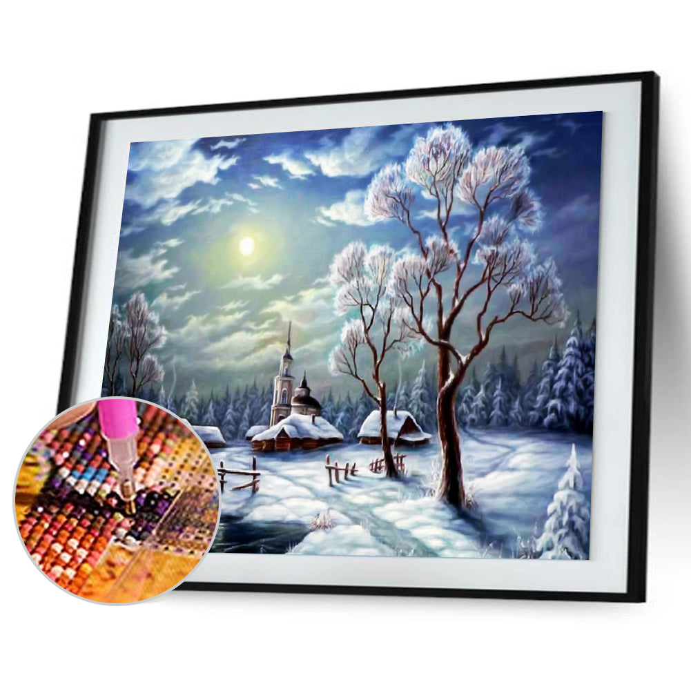 1 X Full Drill Snow Scene Diamond Painting(with rhinestones need to be pasted)