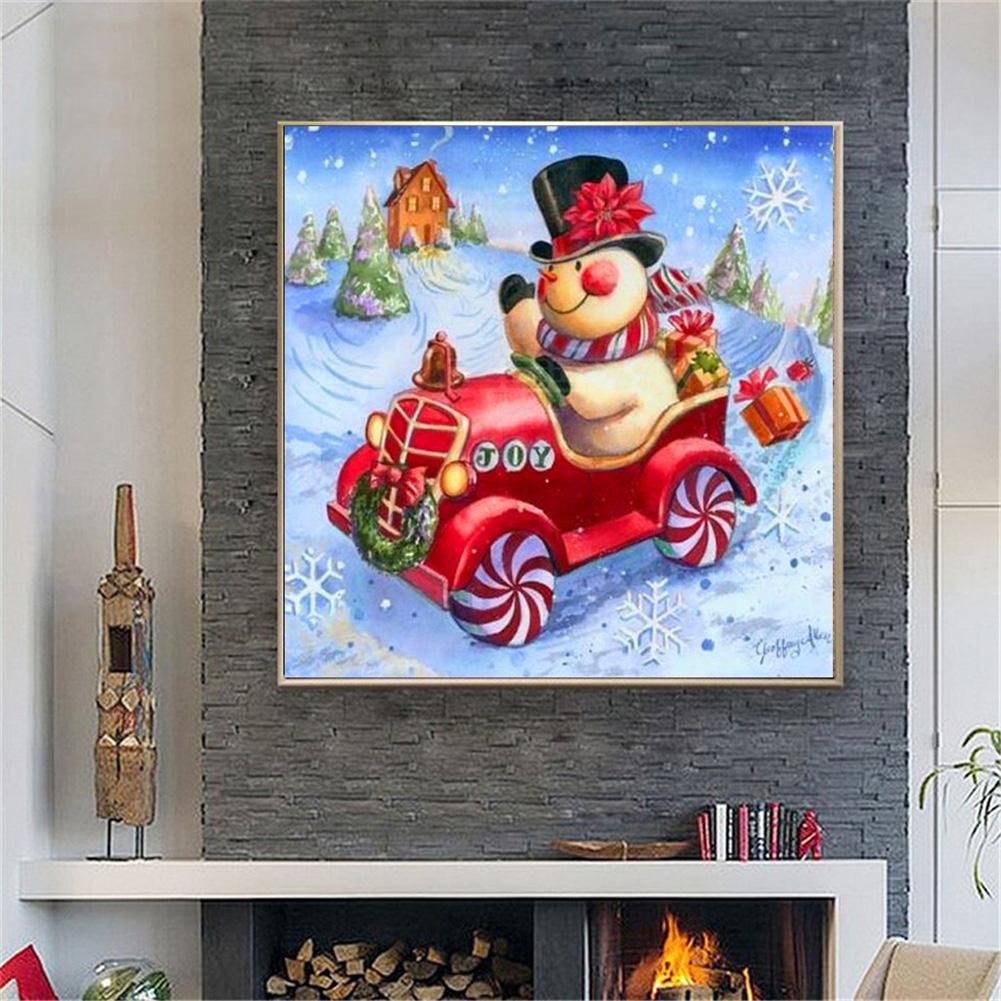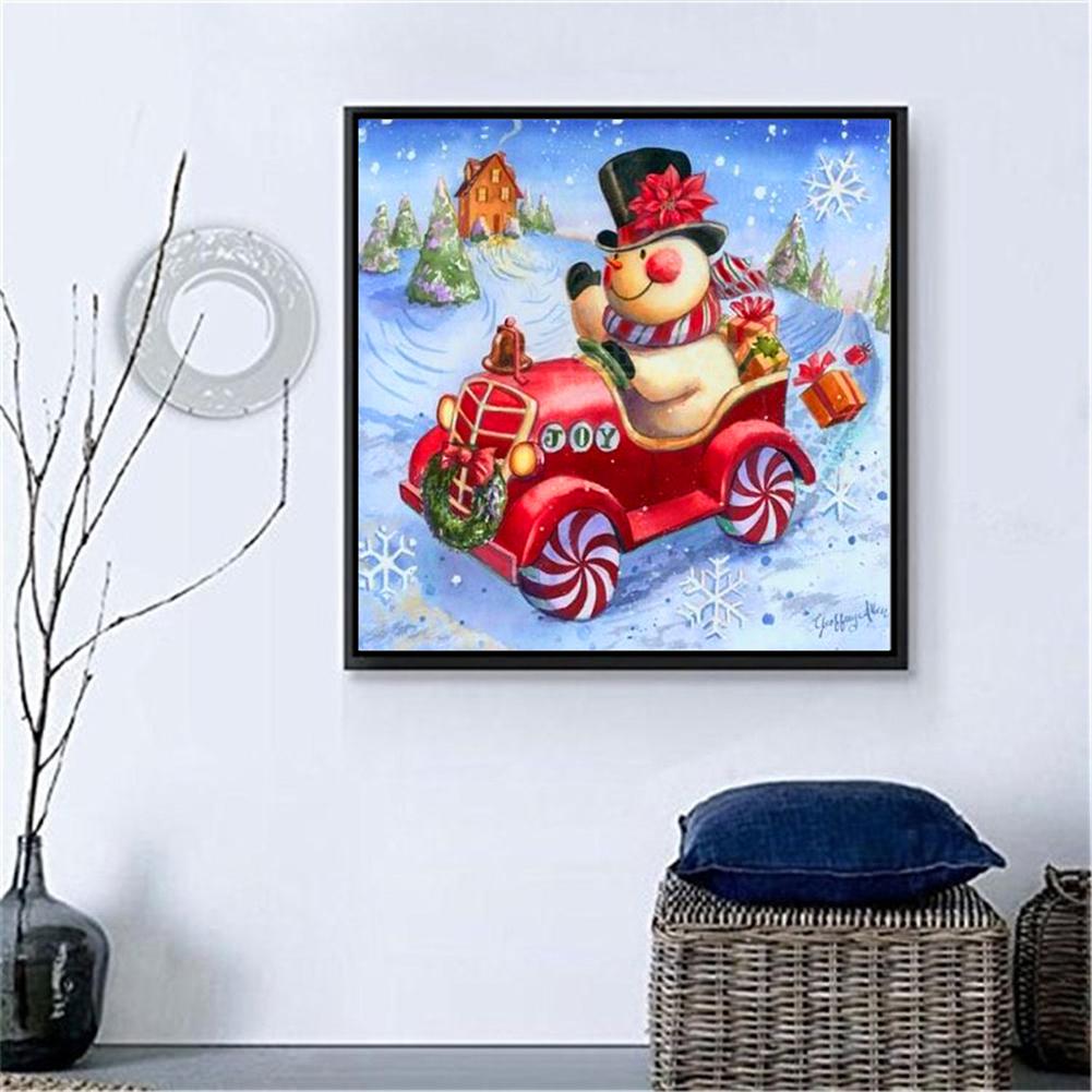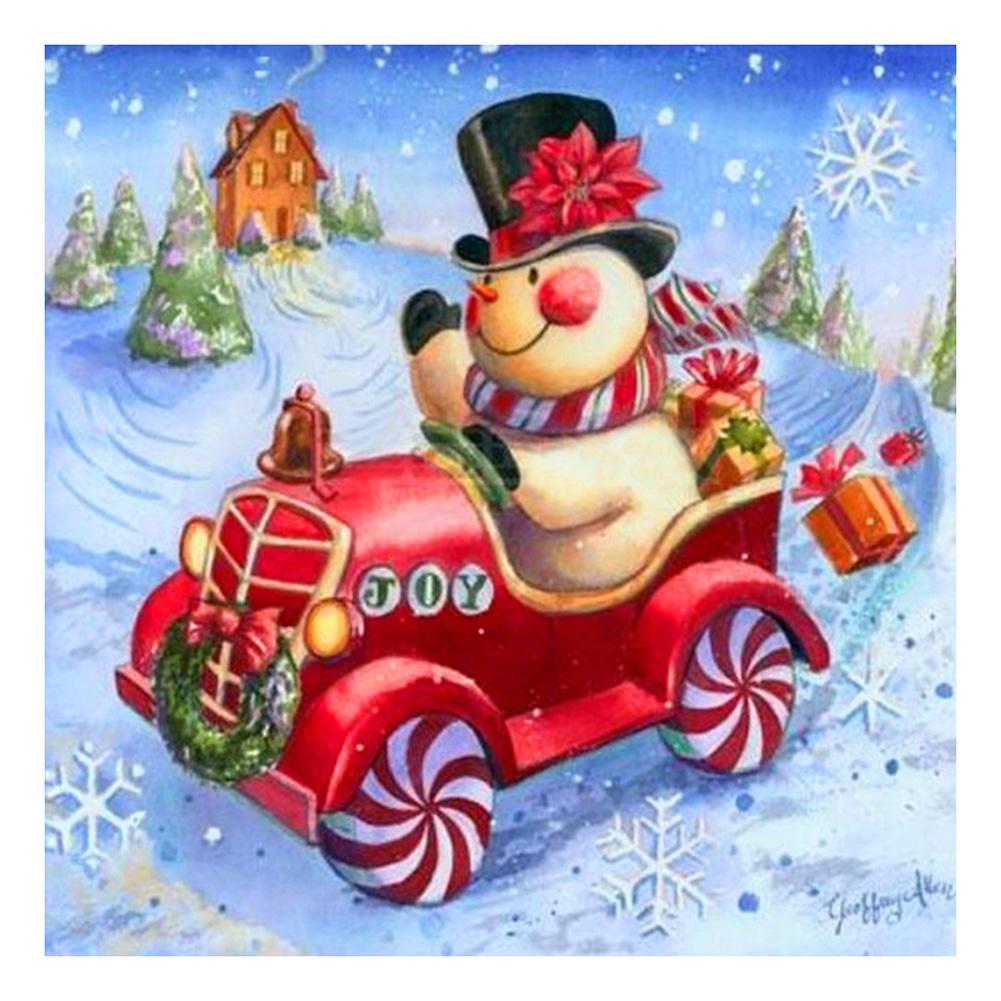 Snowman Car - Full Round Drill Diamond Painting 30*30CM