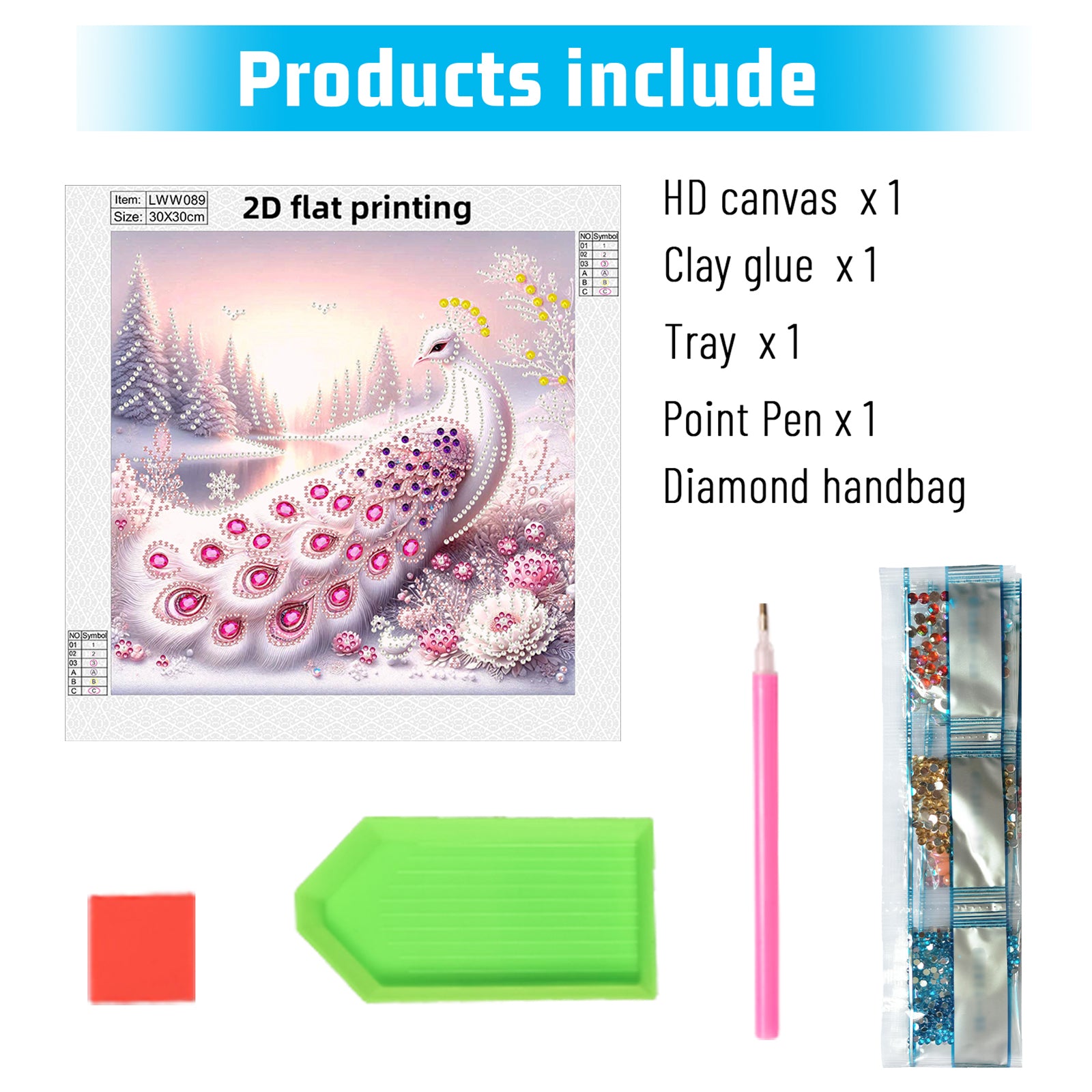 Snowy Peacock - Special Shaped Drill Diamond Painting 30*30CM