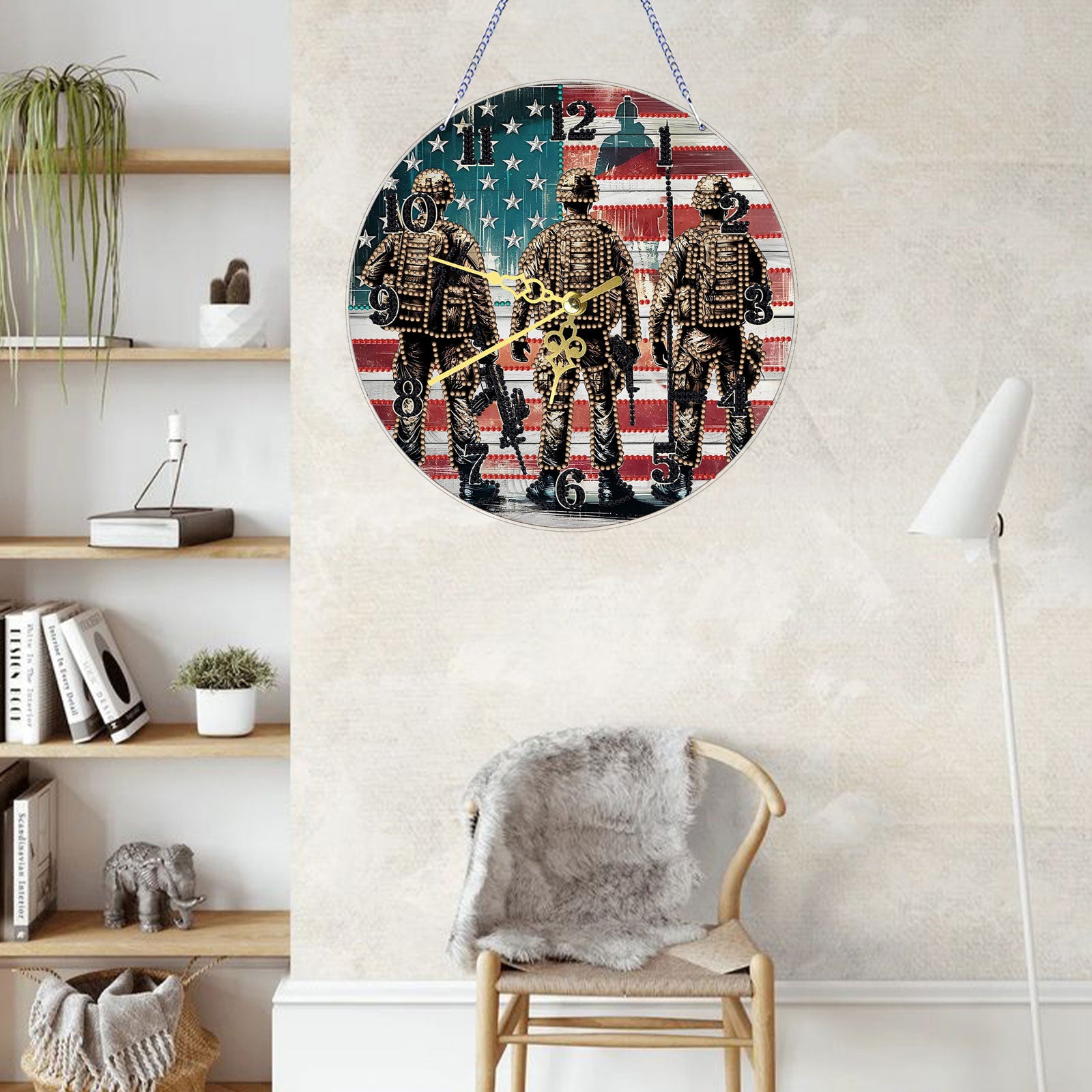 Soldier 2D Flat DIY Acrylic Diamonds Painting Clocks for Living Room Decoration