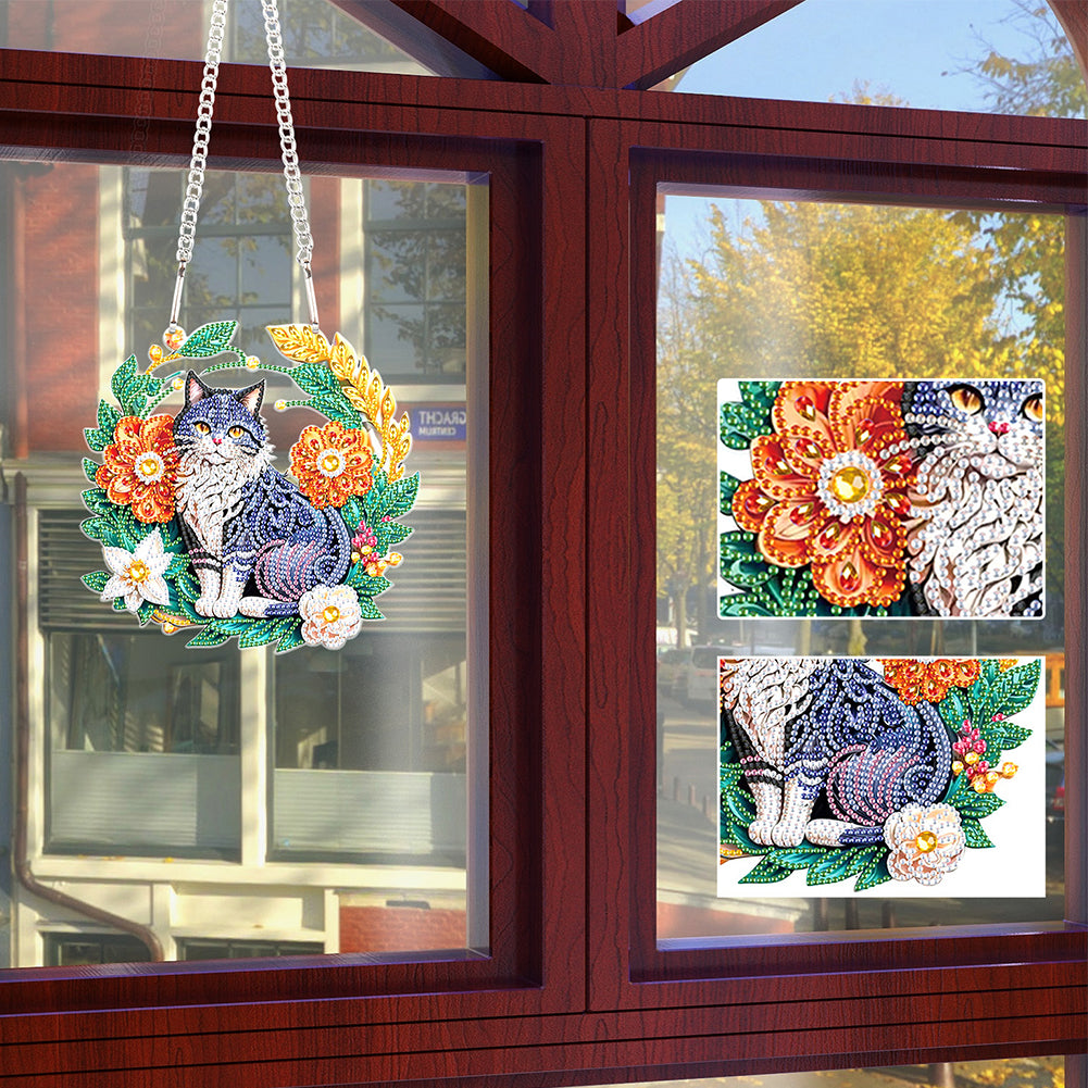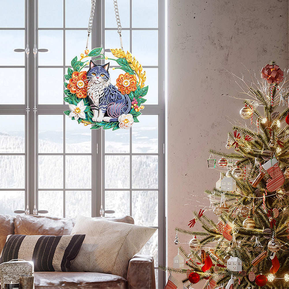 Special Shaped+Round Diamond Painting Wall Decor Wreath (Flower and Black Cat)