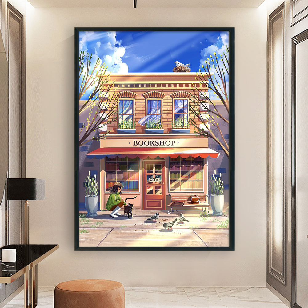 Spring Bookstore - 11CT Stamped Cross Stitch 50*70CM
