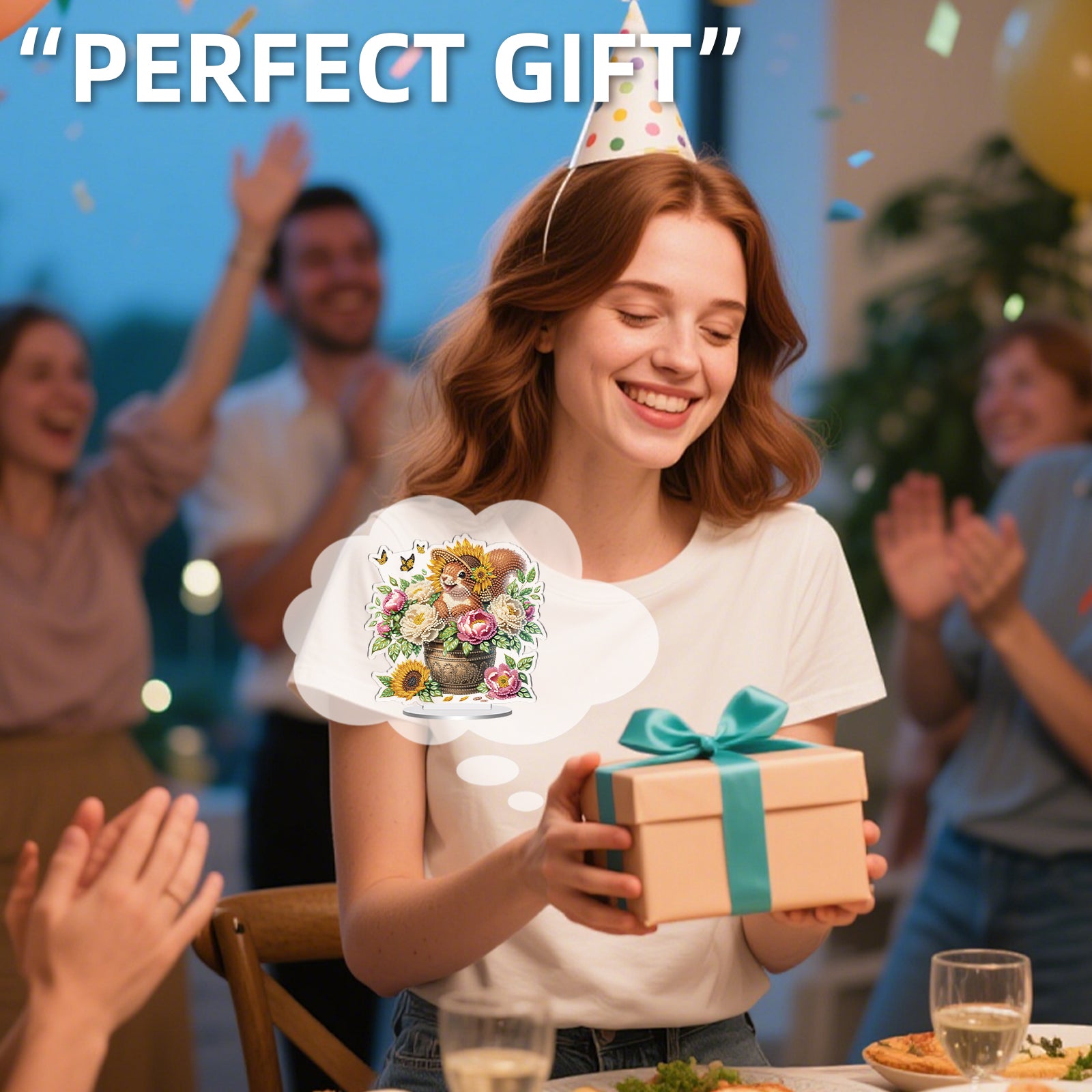 Squirrel and Flower DIY 2D Flat Acrylic Special Shaped Diamond Art Kits 22x25cm