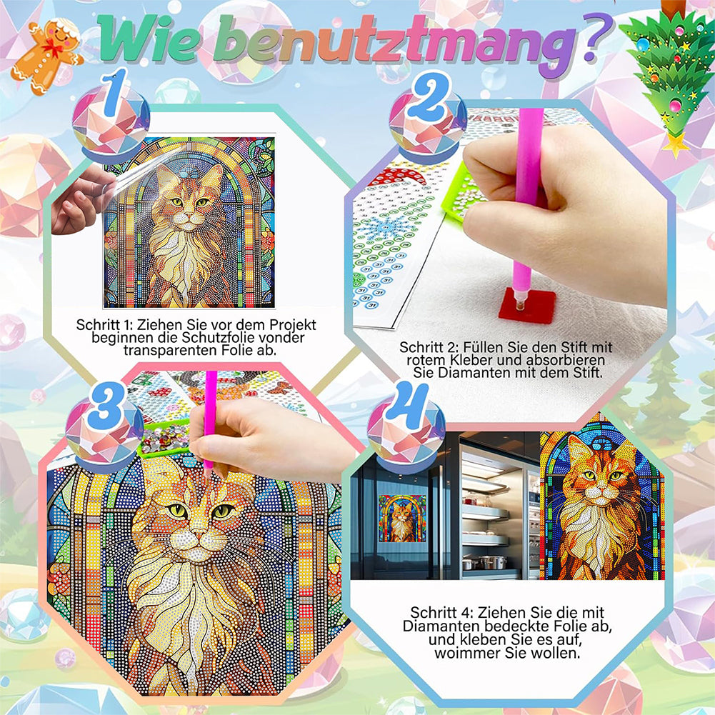 Stained Glass Cat DIY Creative Mosaic Sticker Craft Diamond Painting Sticker