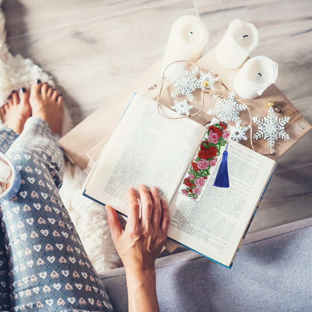 DIY Special Shape Diamond Painting Leather Rose Bookmark Tassel Embroidery