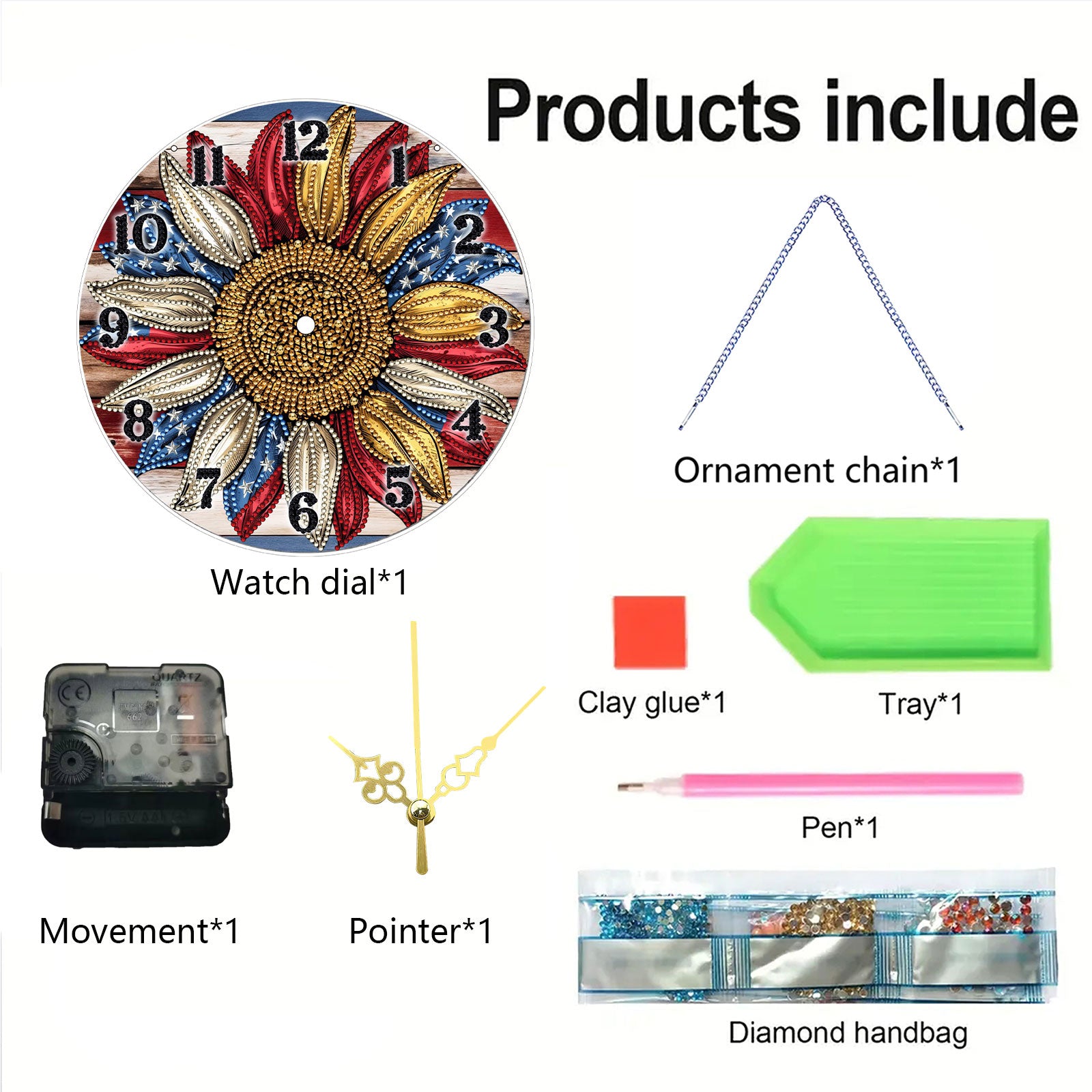 Sunflower 2D Flat DIY Acrylic Diamonds Painting Clocks Home Bedroom Decor