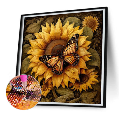 Sunflower Butterfly - Full Round Drill Diamond Painting 30*30CM