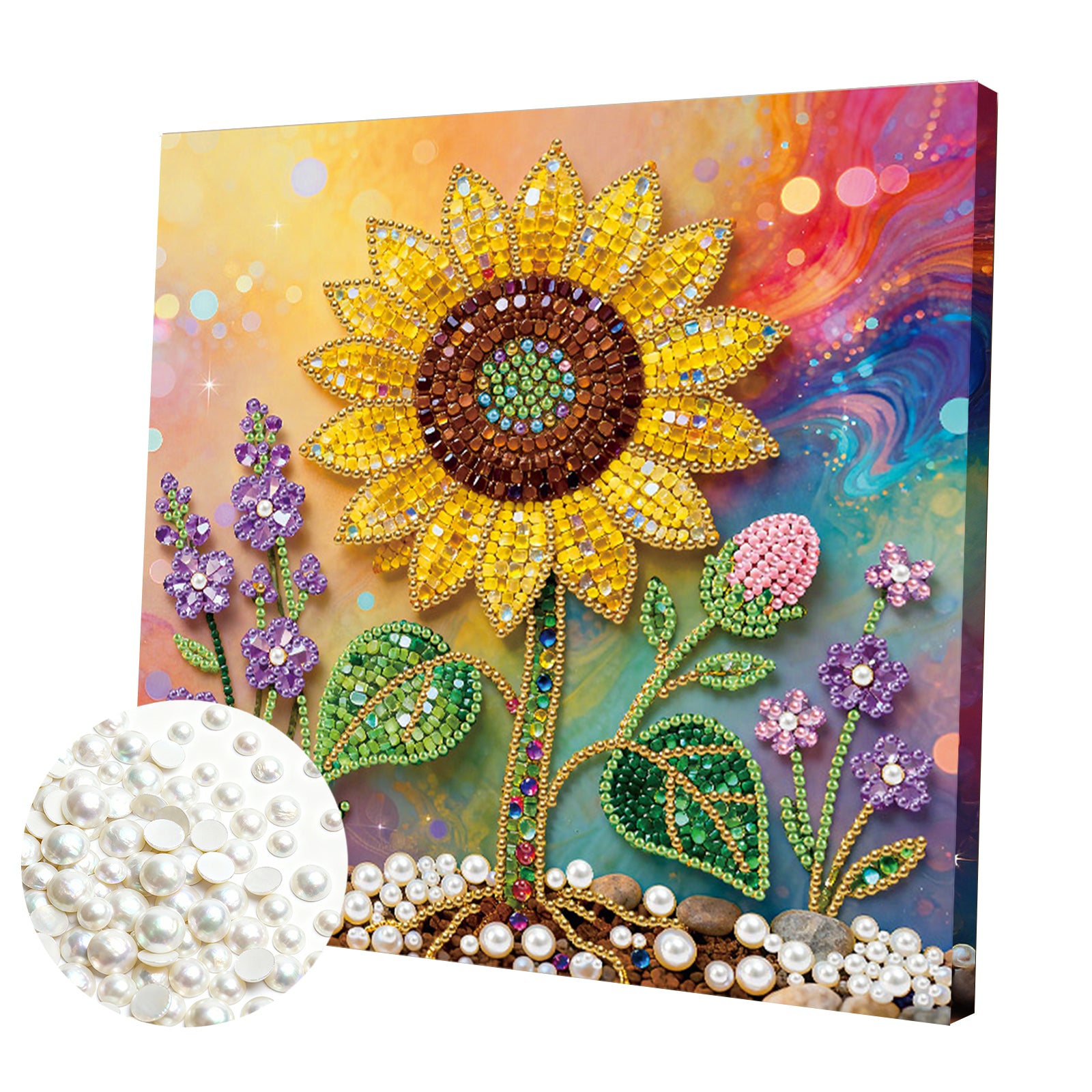 Sunflower - DIY Pearl Gem Art Diamond Painting Kits With Framefor Home Decor -25x25cm