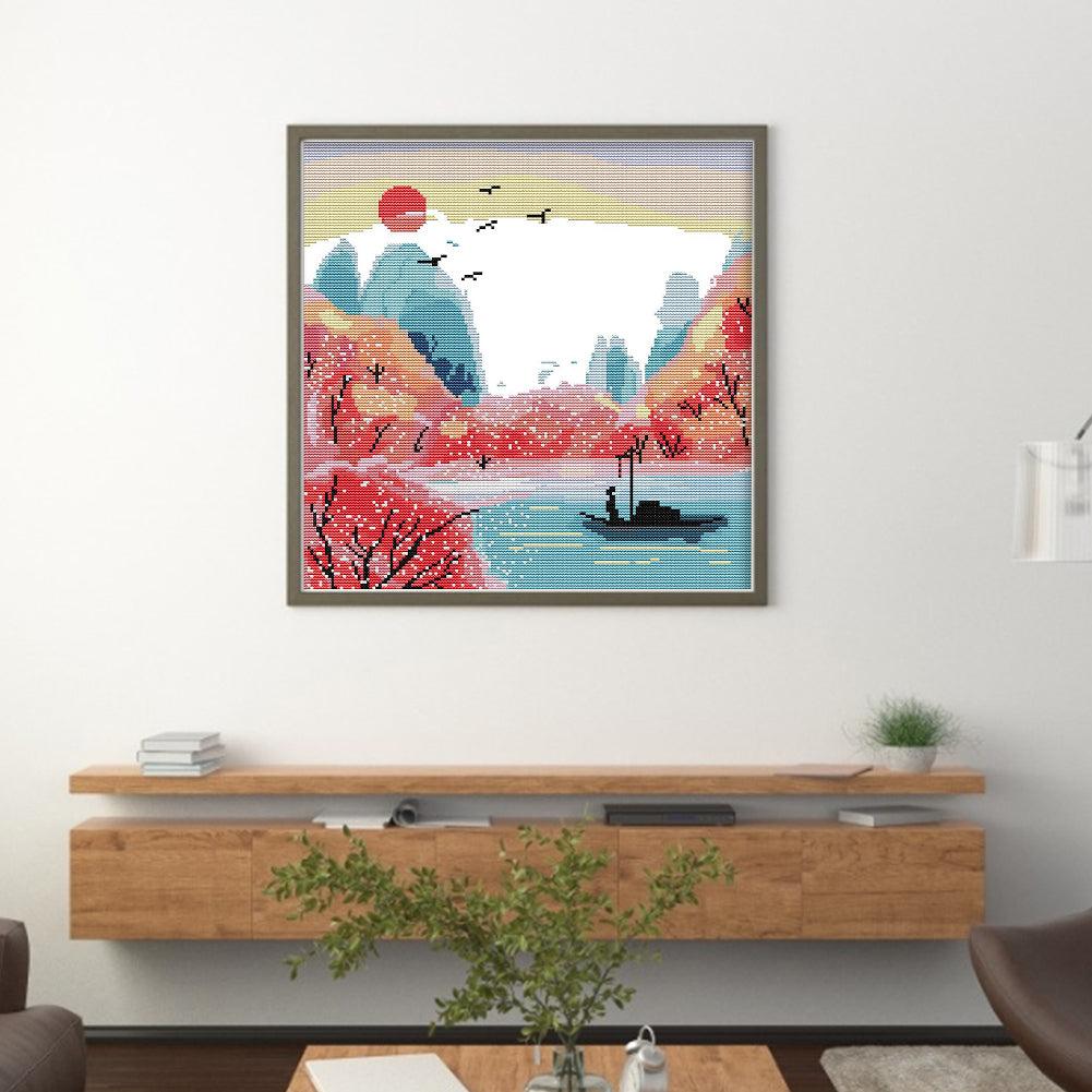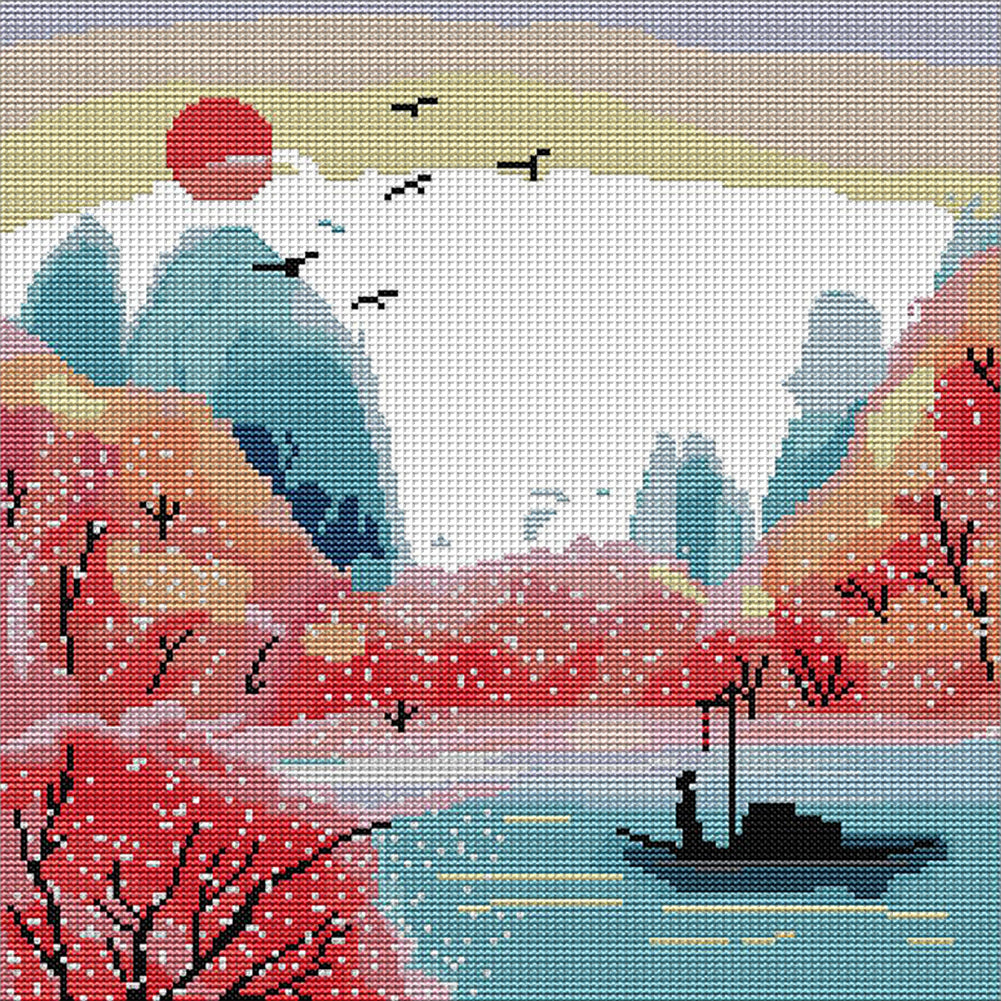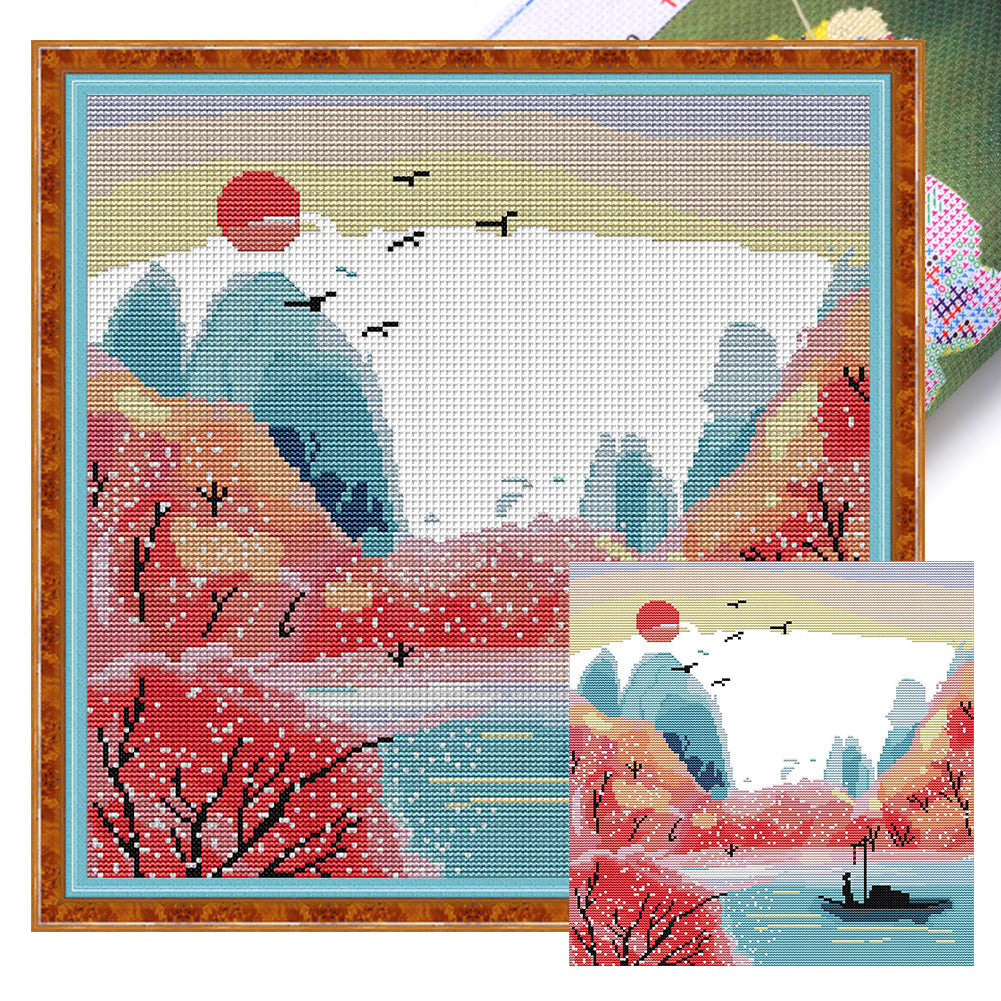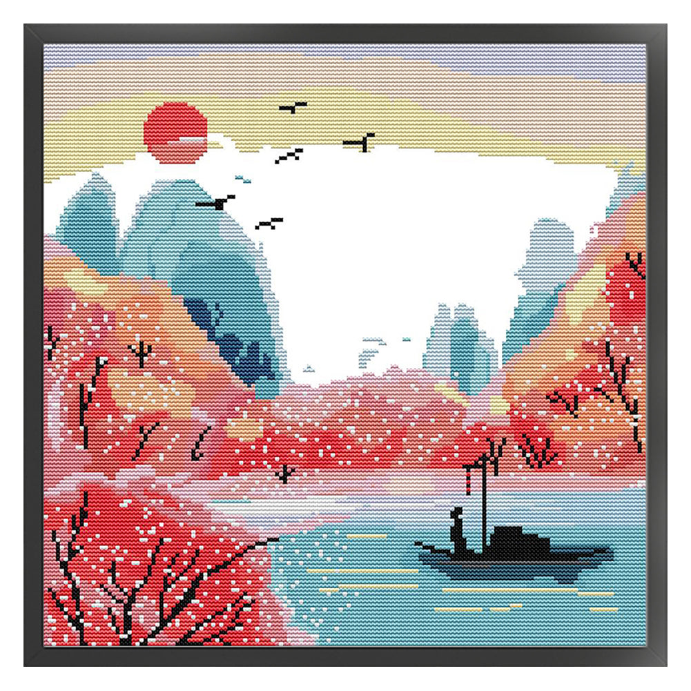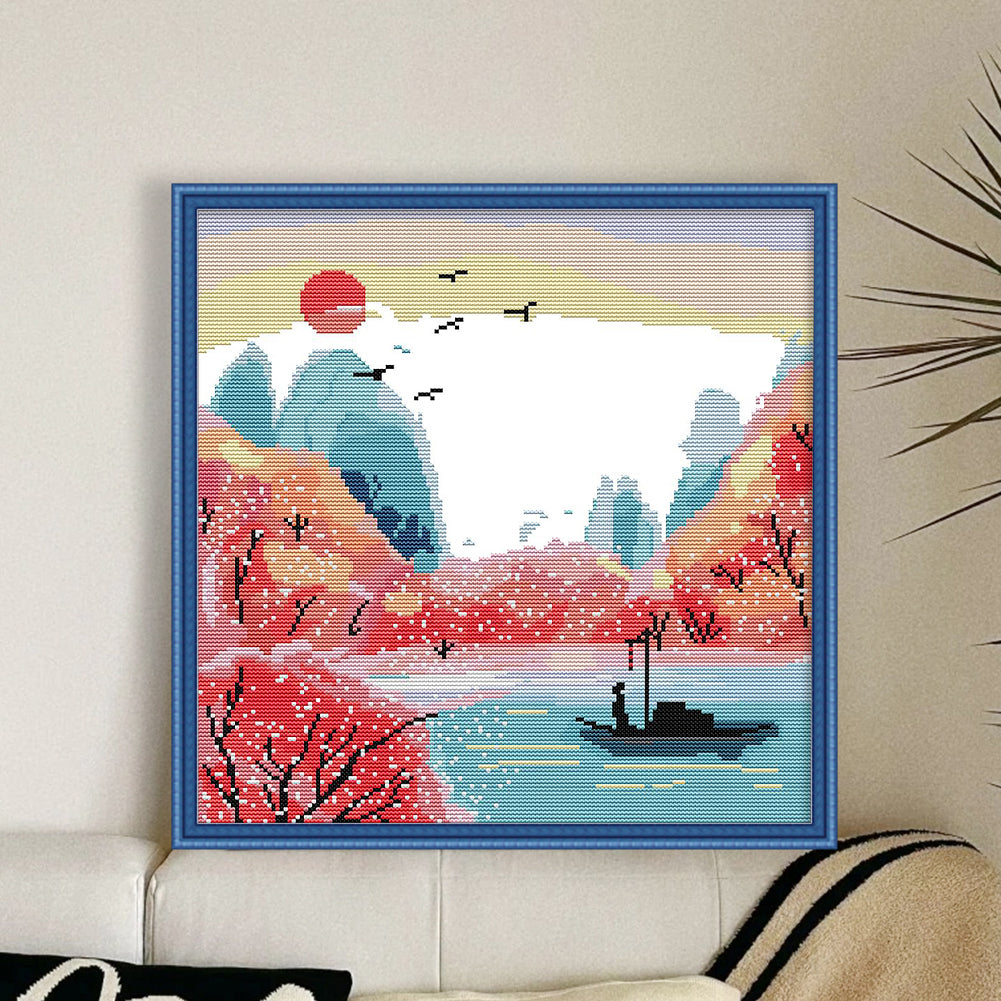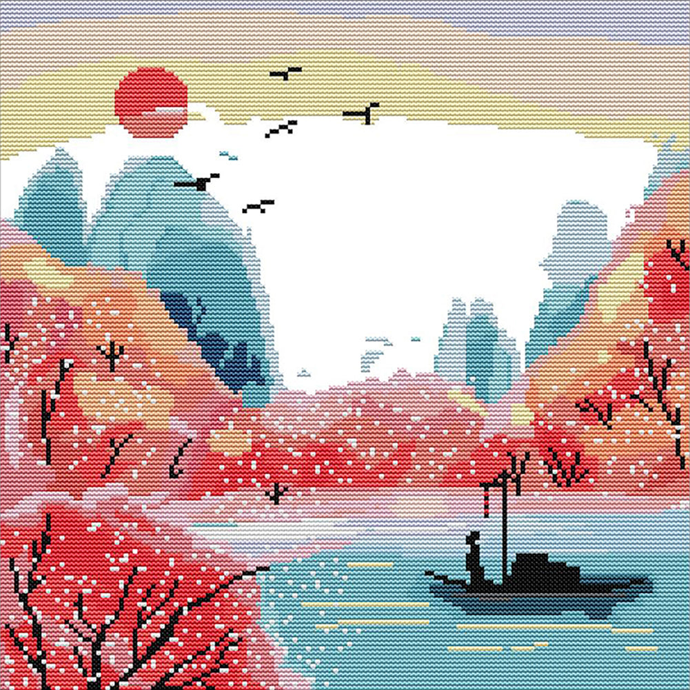 Sunset By The River - 14CT Stamped Cross Stitch 35*36CM(Joy Sunday)