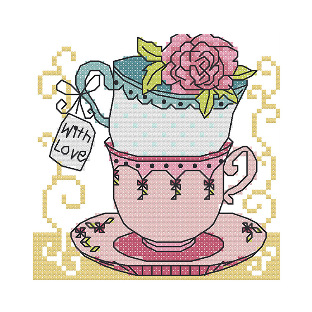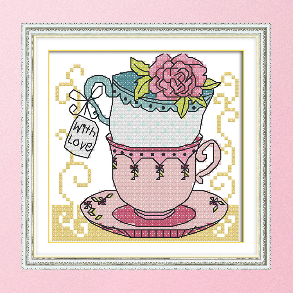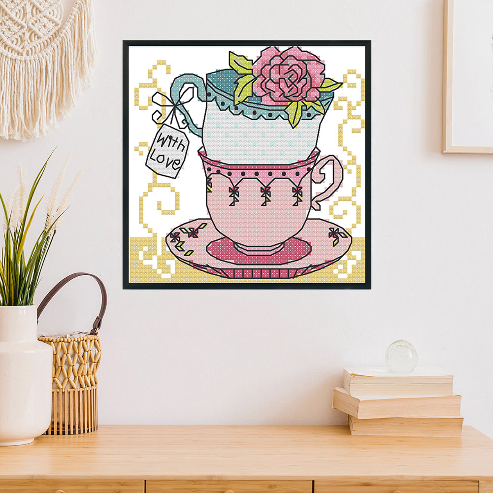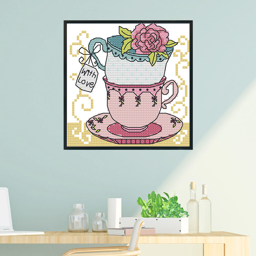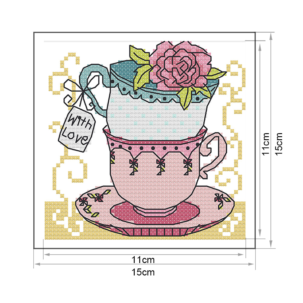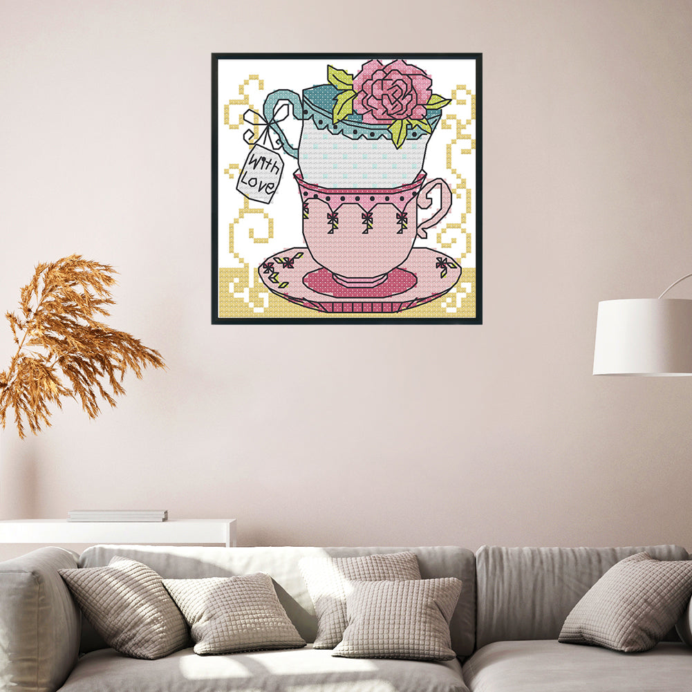 Teacup - 14CT Stamped Cross Stitch 15*15CM