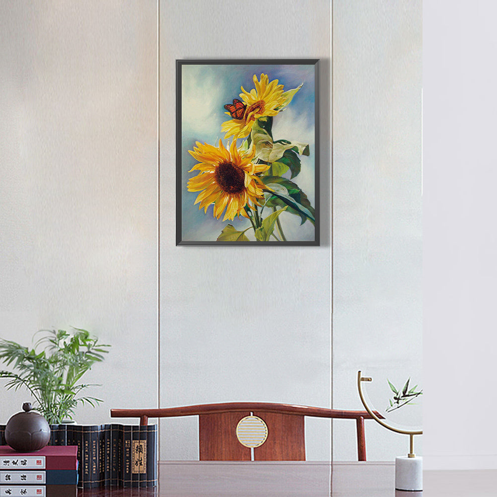 Sunflower Butterfly Paper Painting - Special Shaped Drill Diamond Painting 30*30CM