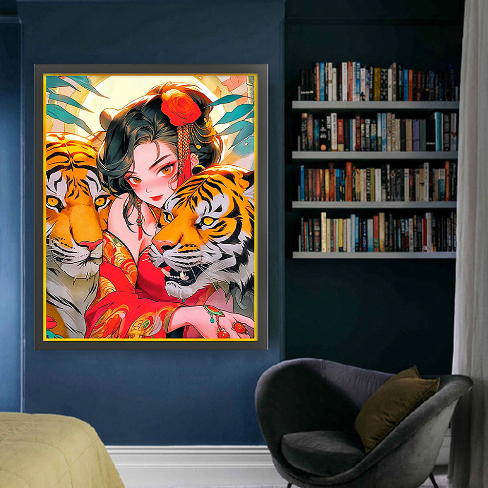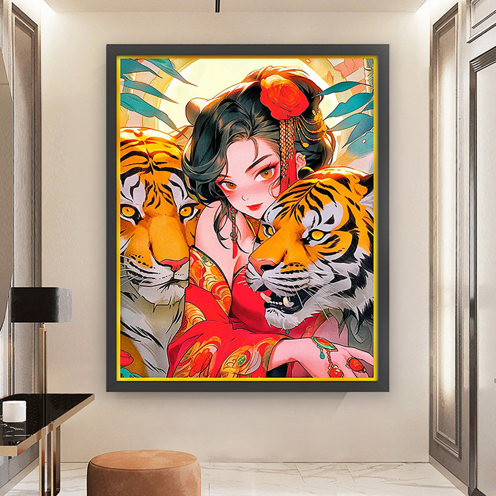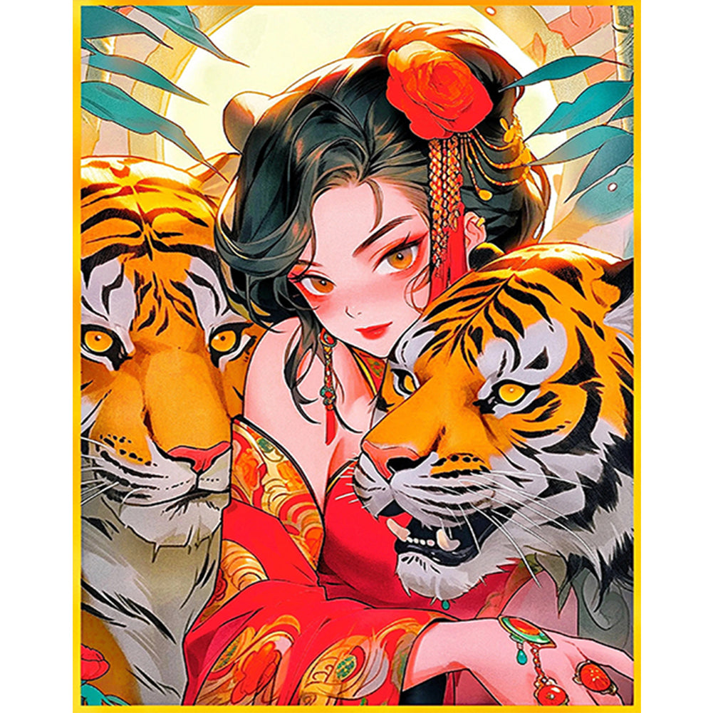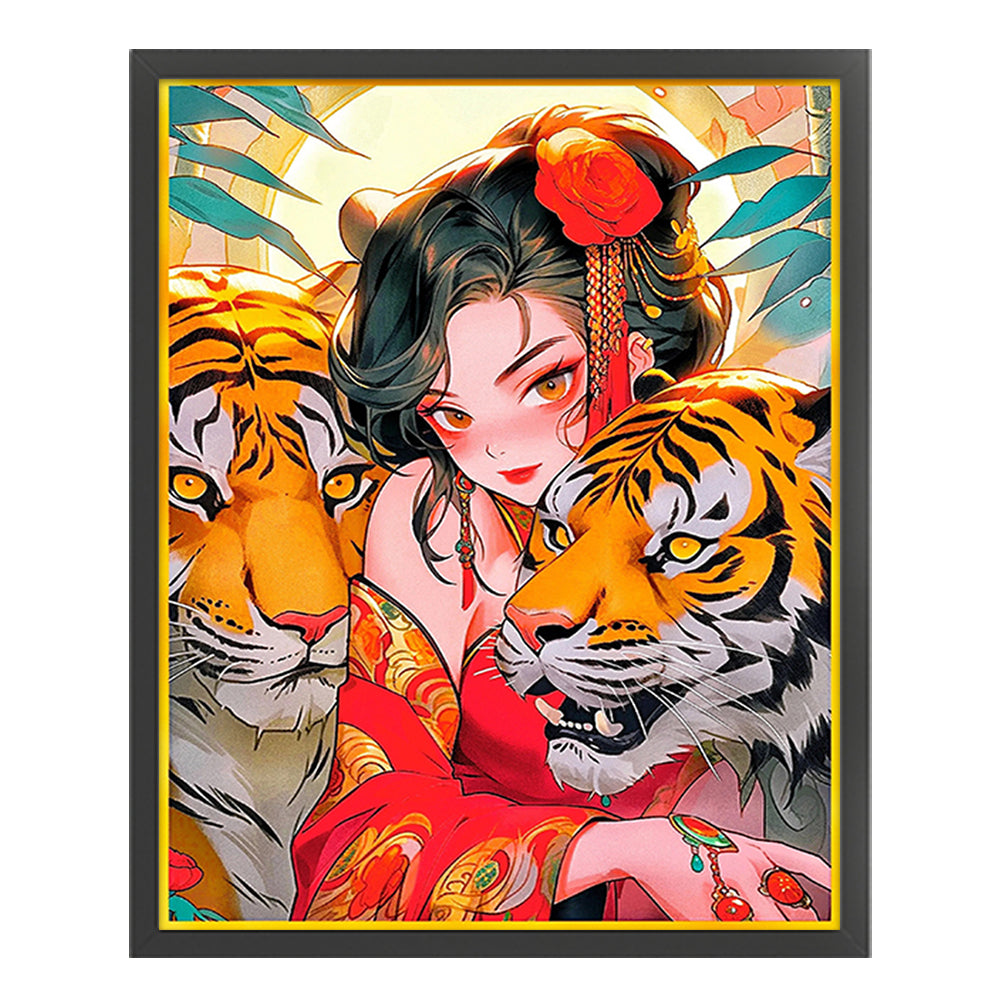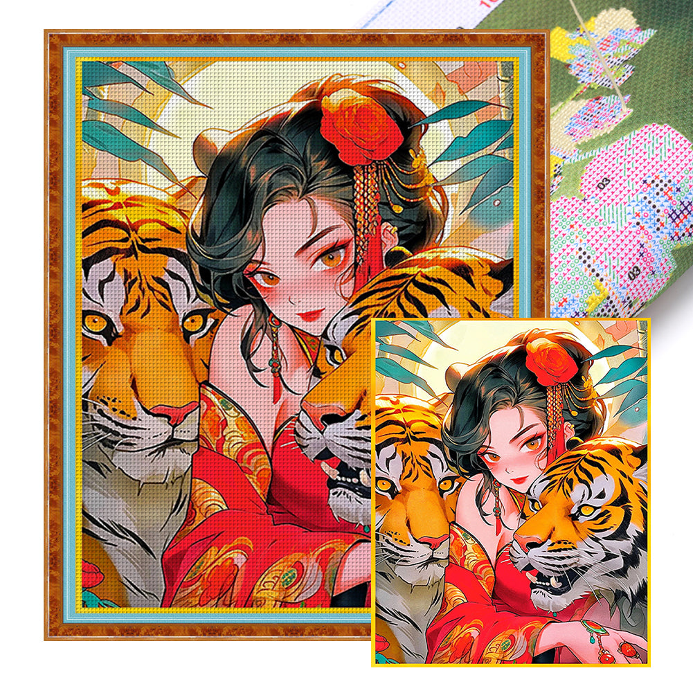 Tiger And Girl - 11CT Stamped Cross Stitch 50*60CM
