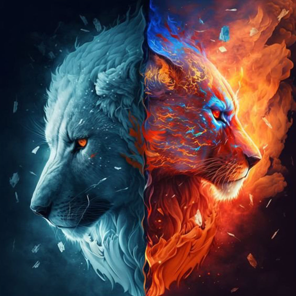 Tiger Yin And Yang Diagram - Full Round Drill Diamond Painting 30*30CM