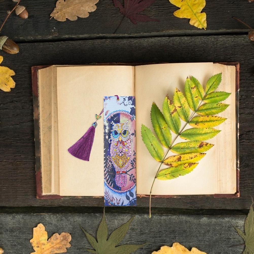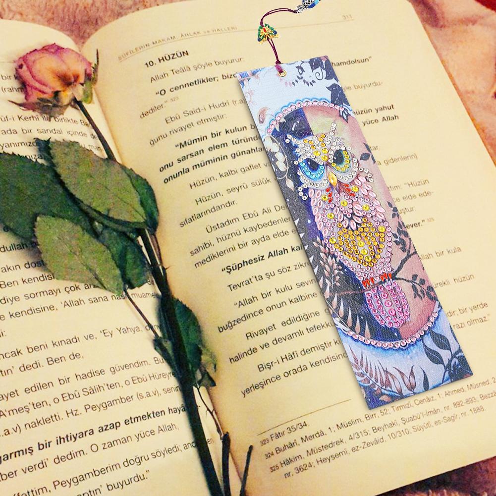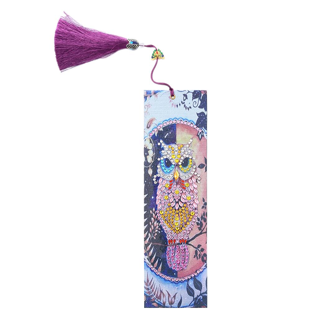 DIY Owl Special Shaped Diamond Painting Leather Bookmarks with Tassel Gifts